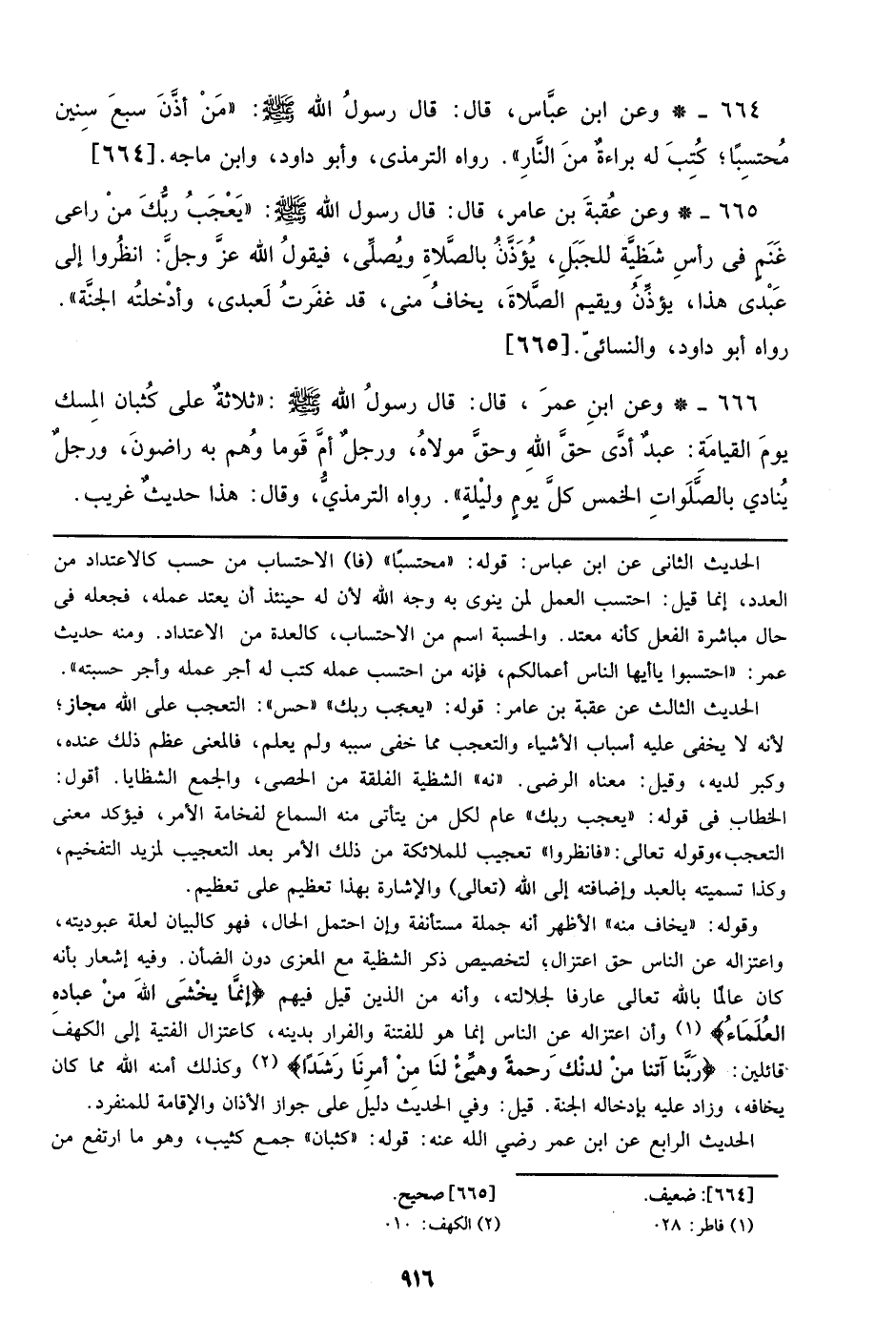 665 - وعن عقبة بن عامر، قال: قال رسول الله صلى الله عليه وسلم: ((يعجب ربك من راعي غنم في رأسه شظية للجبل، يؤذن بالصلاة ويصلي، فيقول الله عز وجل: انظروا إلي عبدي هذا، يؤذن ويقيم الصلاة، يخاف مني، قد غفرت لعبدي، وأدخلته الجنة)). رواه أبو داود، والنسائي. [665]