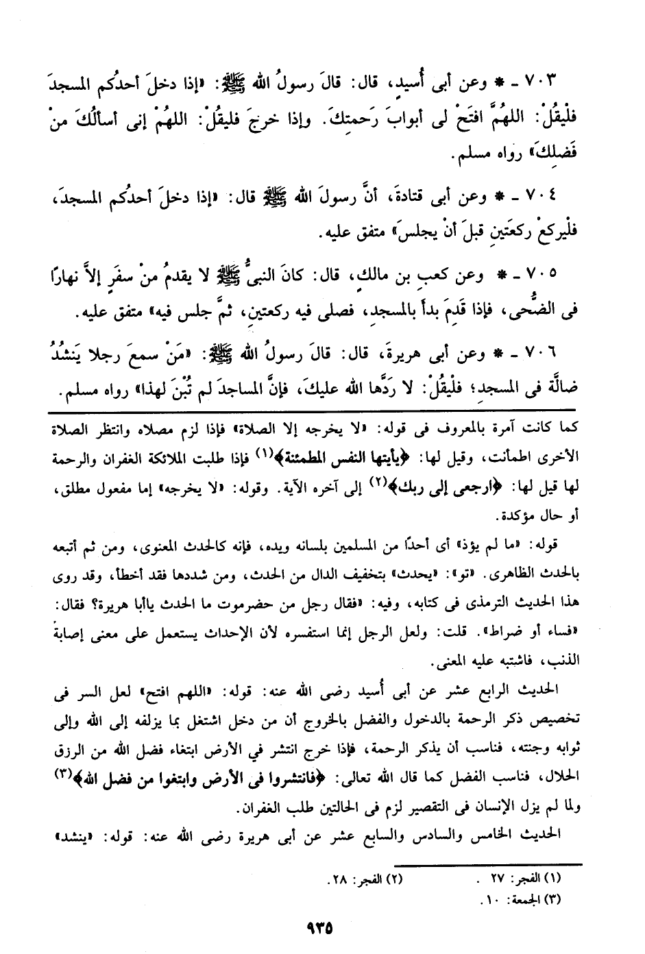 703 - وعن أبي أسيد، قال: قال رسول الله صلى الله عليه وسلم: ((إذا دخل أحدكم المسجد فليقل: اللهم افتح لي أبواب رحمتك. وإذا خرج فليقل: اللهم إني أسألك من فضلك)) رواه مسلم.