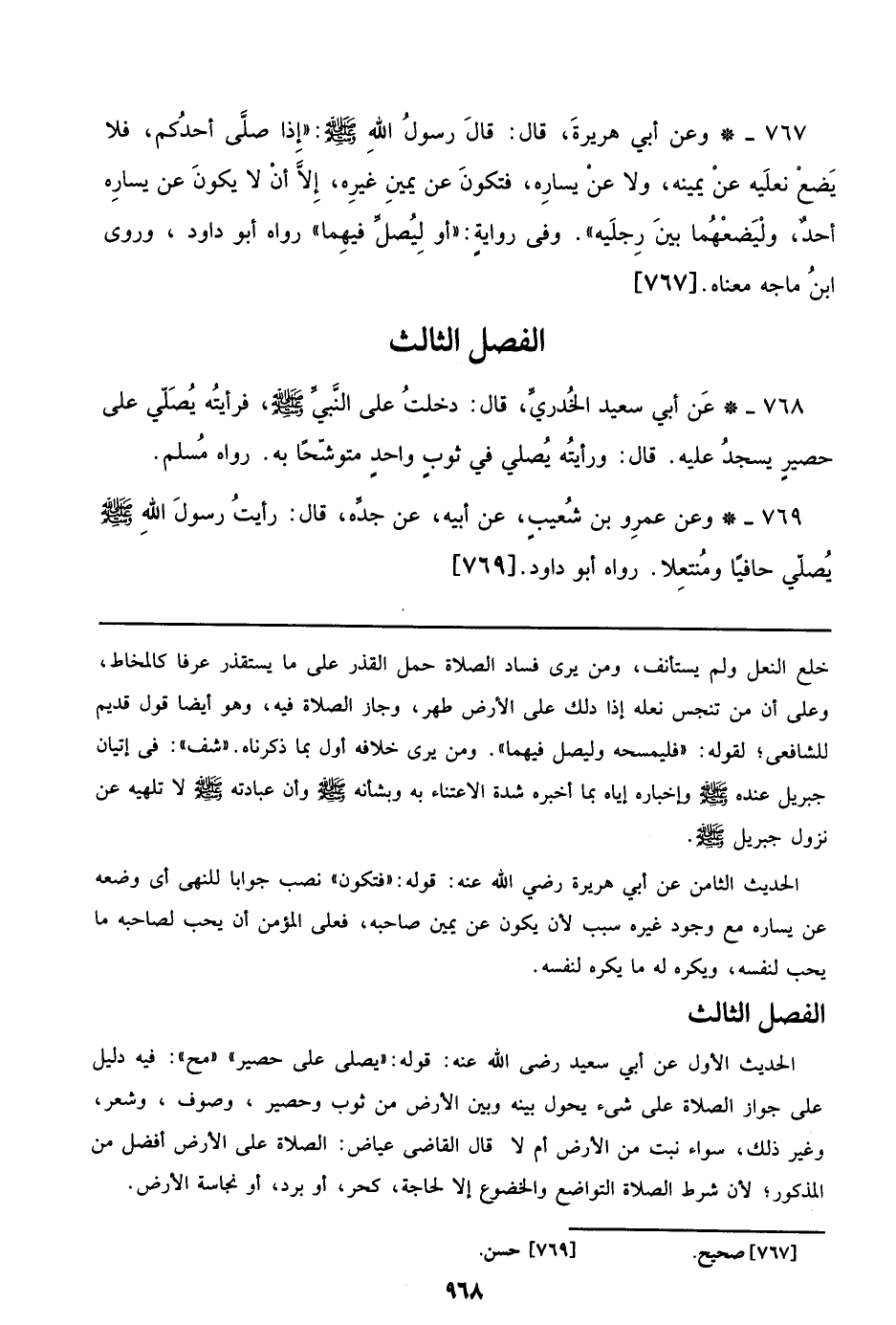 769 - وعن عمرو بن شعيب، عن أبيه، عن جده، قال: رأيت رسول الله صلى الله عليه وسلم يصلي حافياً ومنتعلاً. رواه أبو داود. [769]