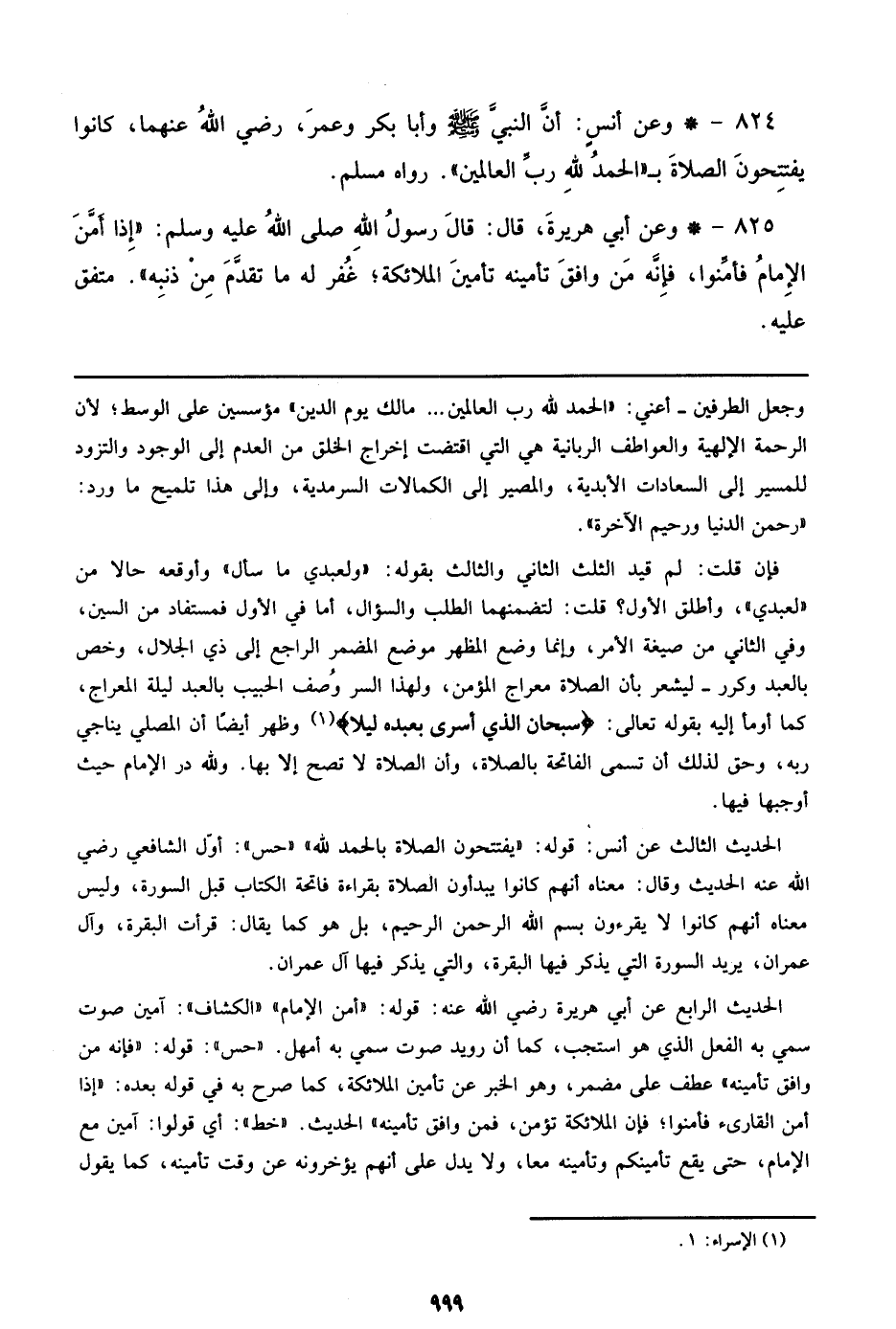 824 - وعن أنس: أن النبي صلى الله عليه وسلم وأبا بكر وعمر، رضي الله عنهما، كانوا يفتتحون الصلاة بـ ((الحمد لله رب العالمين)). رواه مسمل.
