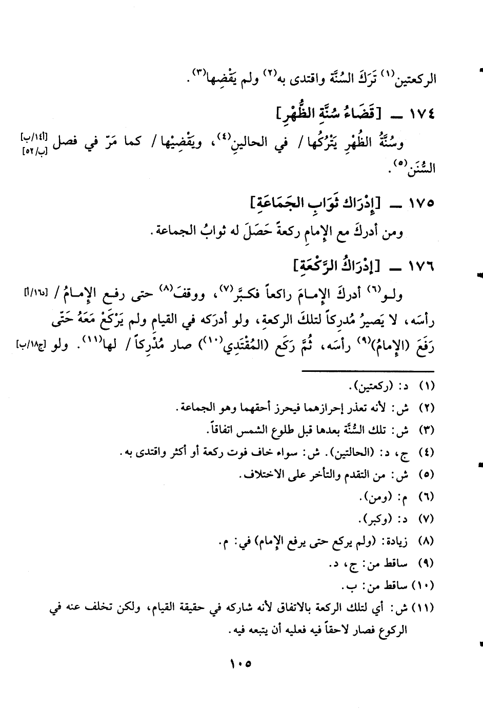 174 - قَضَاء سنة الظّهْر وَسنة الظّهْر يَتْرُكهَا فِي الْحَالين ويقضيها كَمَا مر فِي فصل السّنَن