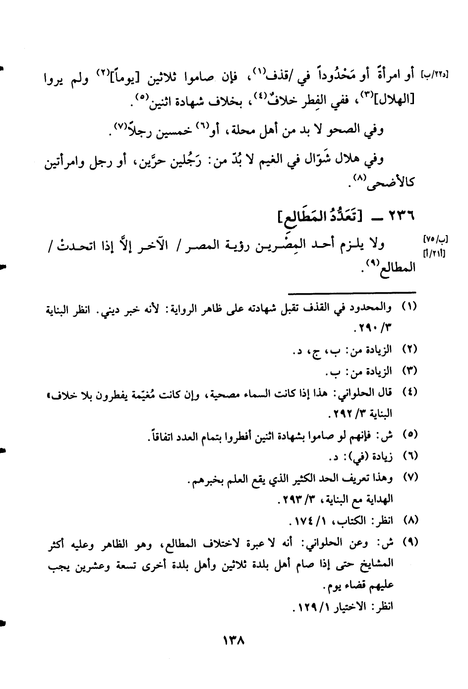 236 - تعدد الْمطَالع وَلَا يلْزم أحد المصرين رُؤْيَة الْمصر الآخر إِلَّا إِذا اتّحدت الْمطَالع