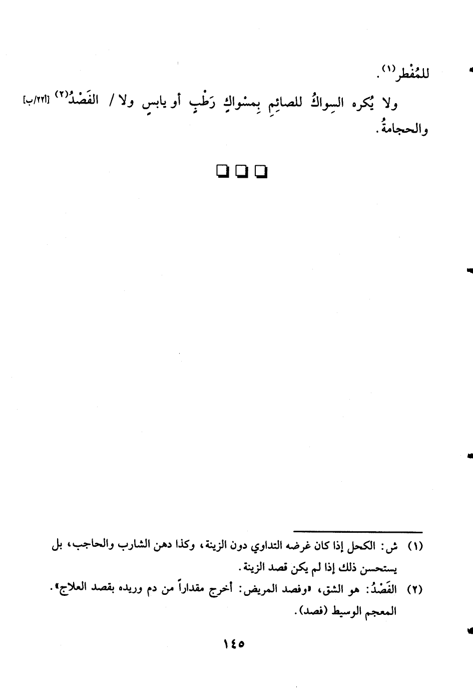 للمفطر وَلَا يكره السِّوَاك للصَّائِم بمسواك رطب أَو يَابِس وَلَا الفصد والحجامة