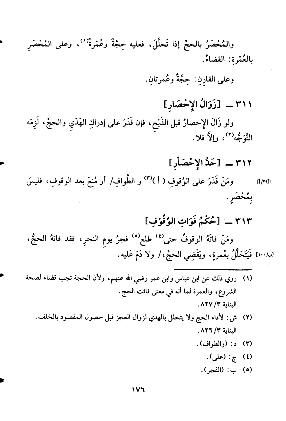 312 - حد الْإِحْصَار وَمن قدر على الْوُقُوف أَو الطّواف أَو منع بعد الْوُقُوف فَلَيْسَ بمحصر