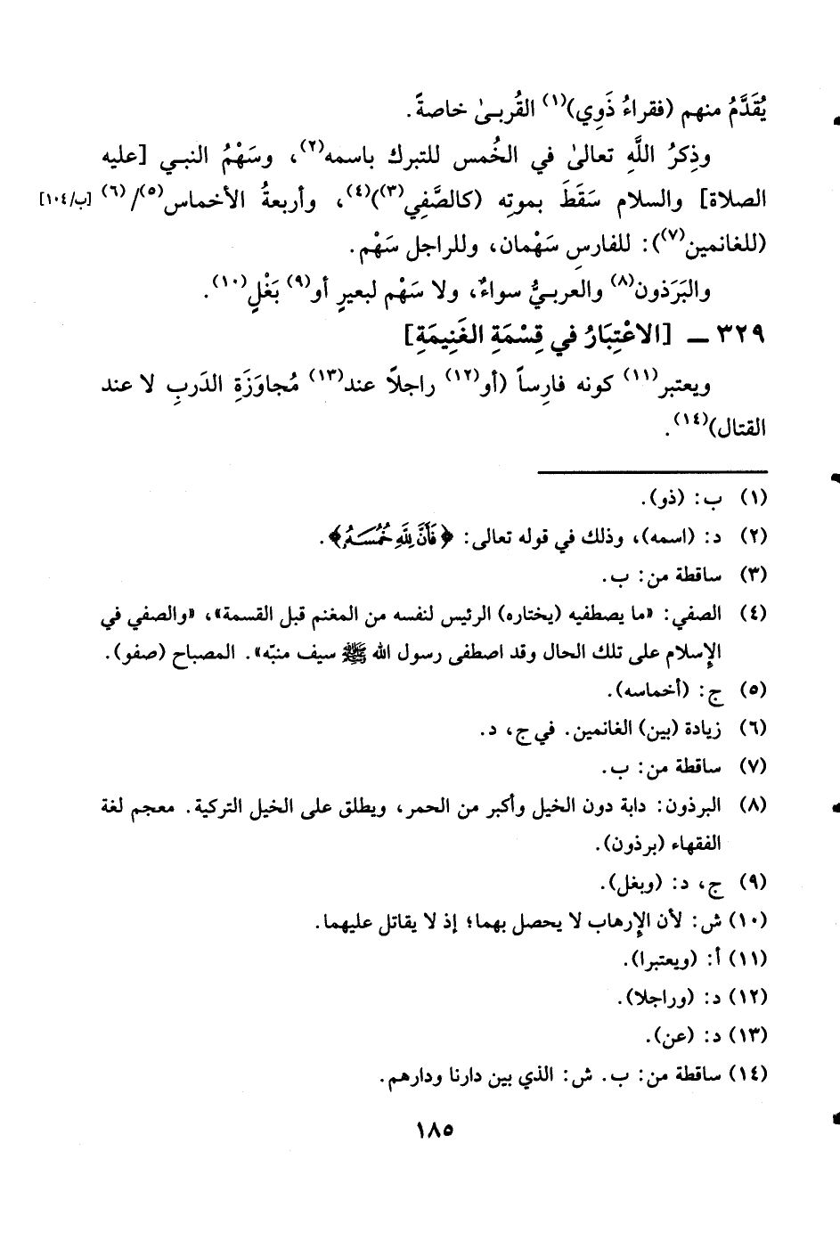 329 - الِاعْتِبَار فِي قسْمَة الْغَنِيمَة وَيعْتَبر كَونه فَارِسًا أَو رَاجِلا عِنْد مُجَاوزَة الدَّرْب لَا عِنْد الْقِتَال