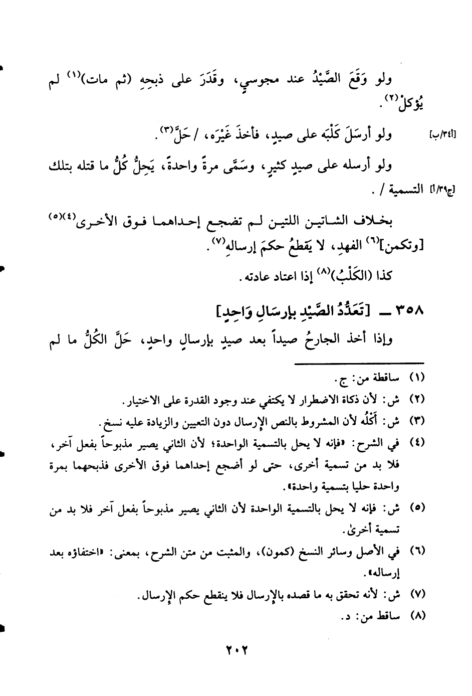 358 - تعدد الصَّيْد بإرسال وَاحِد وَإِذا أَخذ الْجَارِح صيدا بعد صيد بإرسال وَاحِد حل الْكل مَا لم