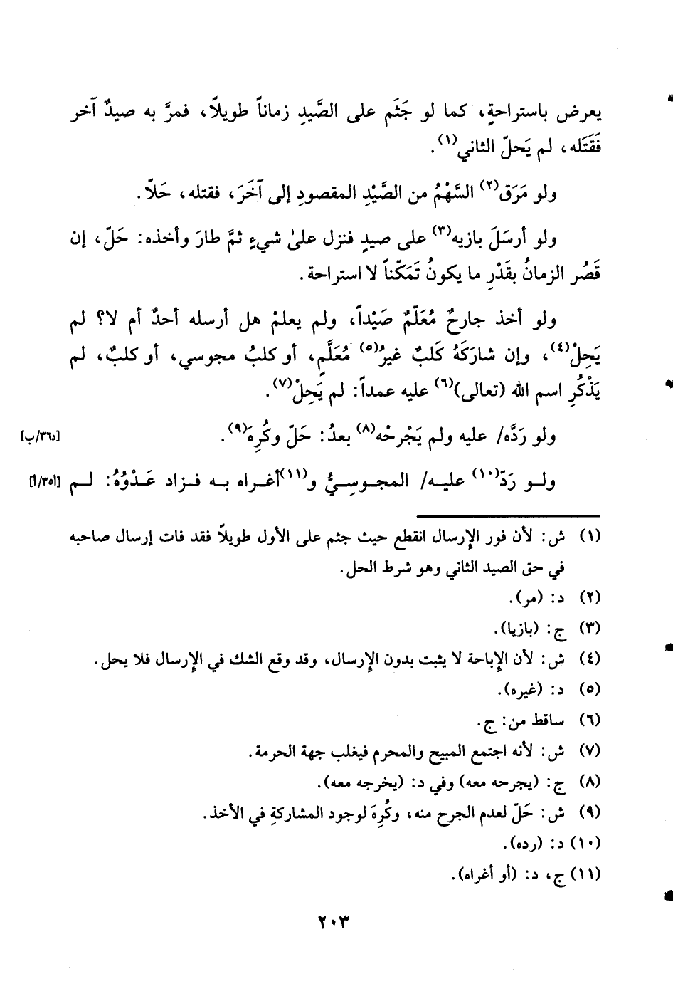 يعرض باستراحة كَمَا لَو جثم على الصَّيْد زَمَانا طَويلا فَمر بِهِ صيد آخر فَقتله لم يحل الثَّانِي وَلَو مرق السهْم من الصَّيْد الْمَقْصُود إِلَى آخر فَقتله حلا وَلَو أرسل بازيه على صيد فَنزل على شَيْء ثمَّ طَار وَأَخذه حل إِن قصر الزَّمَان بِقدر مَا يكون تمَكنا لَا استراحة وَلَو أَخذ جارح معلم صيدا وَلم يعلم هَل أرْسلهُ أحد أم لَا لم يحل وَإِن شَاركهُ كلب غير معلم أَو كلب مَجُوسِيّ أَو كلب لم يذكر اسْم الله تَعَالَى عَلَيْهِ عمدا لم يحل وَلَو رده عَلَيْهِ وَلم يجرحه بعد حل وَكره وَلَو رد عَلَيْهِ الْمَجُوسِيّ وأغراه بِهِ فَزَاد عدوه لم