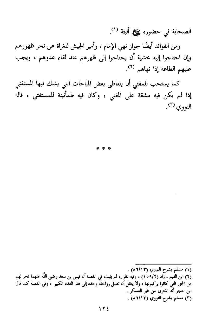 ومن الفوائد أيضا جواز نهي الإمام، وأمير الجيش للغزاة عن نحر ظهورهم وإن احتاجوا إليه خشية أن يحتاجوا إلى ظهورهم عند لقاء العدو، ويجب عليهم الطاعة إذا نهاهم2.