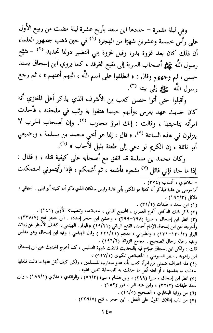 5 انظر ابن إسحاق، سيرة (299) ، وابن هشام، سيرة (3/56) ، والواقدي، مغازي (1/189) ، وابن سعد طبقات (2/32) ، وابن عبد البر، درر (152) .