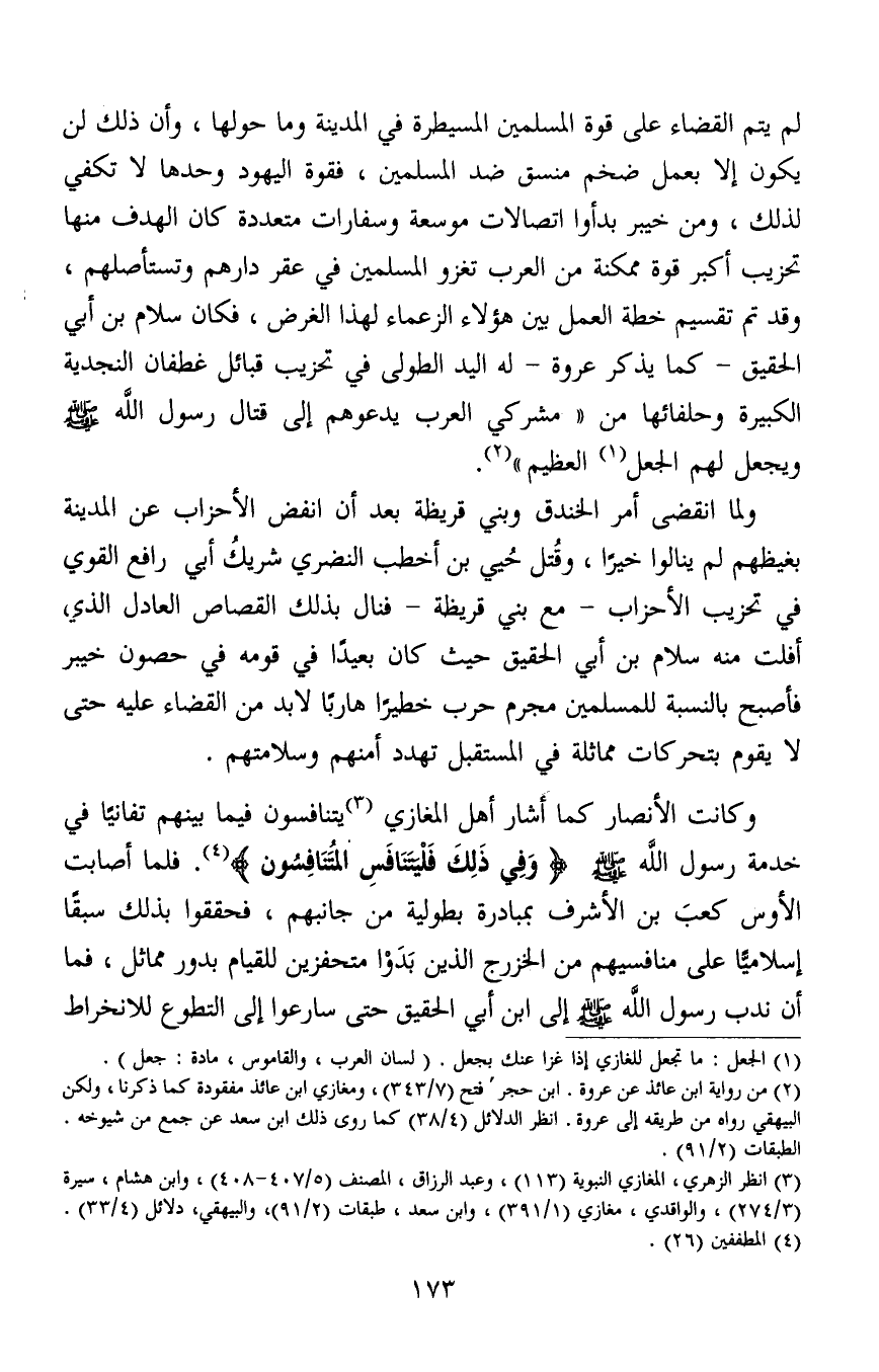 وكانت الأنصار كما أشار أهل المغازي3 يتنافسون فيما بينهم تفانيًا في خدمة رسول الله صلى الله عليه وسلم {وَفِي ذَلِكَ فَلْيَتَنَافَسِ الْمُتَنَافِسُونَ} 4. فلما أصابت الأوس كعبَ بن الأشرف بمبادرة بطولية من جانبهم، فحققوا بذلك سبقا إسلاميًّا على منافسيهم من الخزرج الذين بَدَوْا متحفزين للقيام بدور مماثل، فما أن ندب رسول الله صلى الله عليه وسلم إلى ابن أبي الحقيق حتى سارعوا إلى التطوع للانخراط