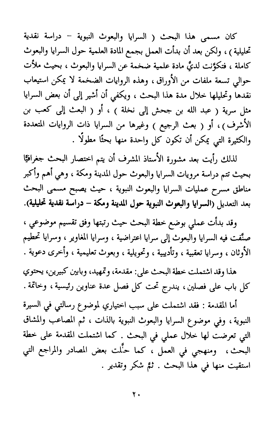 لذلك رأيت بعد مشورة الأستاذ المشرف أن يتم اختصار البحث جغرافيّا بحيث تتم دراسة مرويات السرايا والبعوث حول المدينة ومكة، وهي أهم وأكبر مناطق مسرح عمليات السرايا والبعوث النبوية، حيث يصبح مسمى البحث بعد التعديل (السرايا والبعوث النبوية حول المدينة ومكة - دراسة نقدية تحليلية) .