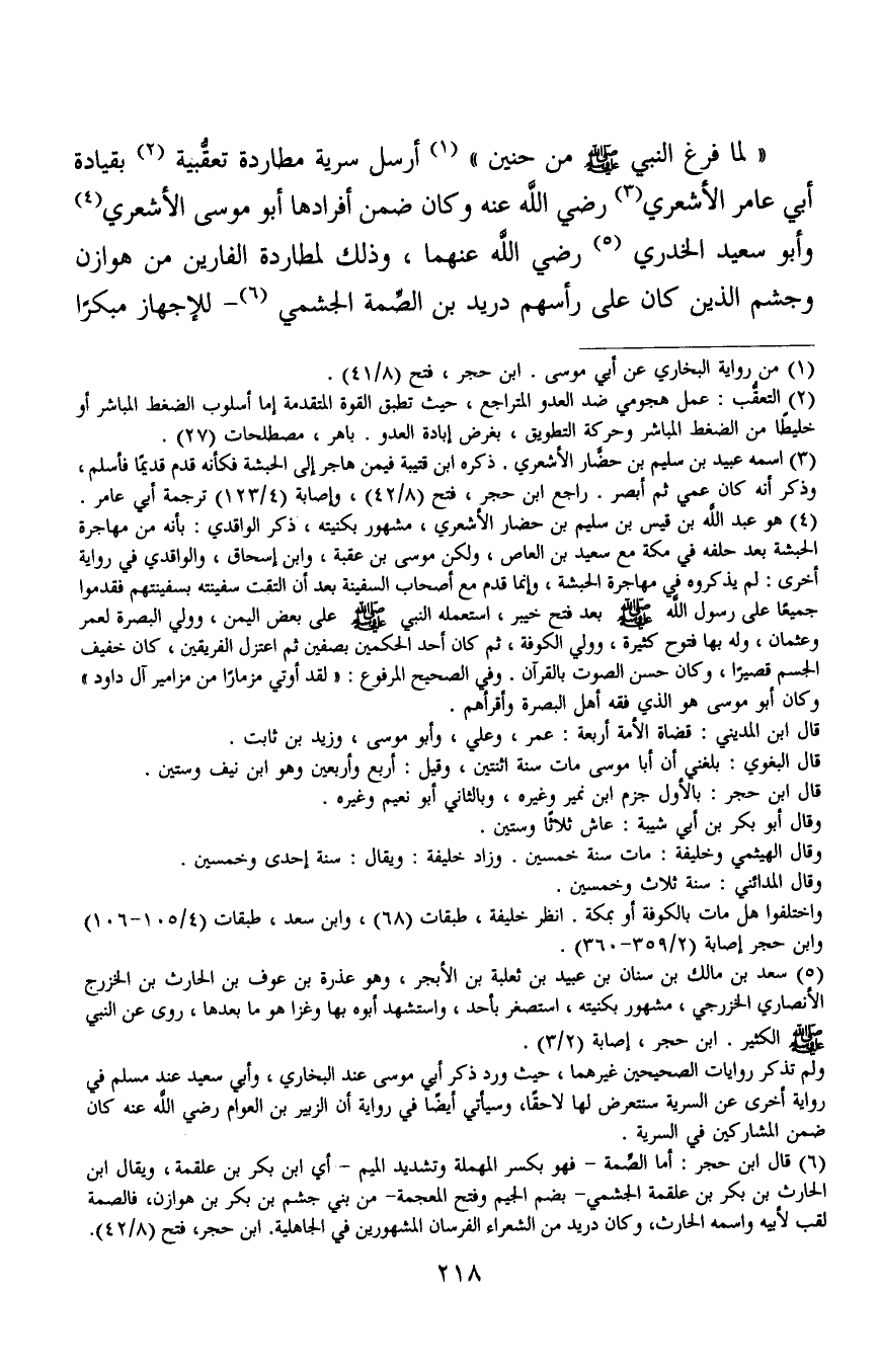 4 هو عبد الله بن قيس بن سليم بن حضار الأشعري، مشهور بكنيته، ذكر الواقدي: بأنه من مهاجرة الحبشة بعد حلفه في مكة مع سعيد بن العاص، ولكن موسى بن عقبة، وابن إسحاق، والواقدي في رواية أخرى: لم يذكروه في مهاجرة الحبشة، وإنما قدم مع أصحاب السفينة بعد أن التقت سفينته بسفينتهم فقدموا جميعا على رسول الله صلى الله عليه وسلم بعد فتح خيبر، استعمله النبي صلى الله عليه وسلم على بعض اليمن، وولي البصرة لعمر وعثمان، وله بها فتوح كثيرة، وولي الكوفة، ثم كان أحد الحكمين بصفين ثم اعتزل الفريقين، كان خفيف الجسم قصيرا، وكان حسن الصوت بالقرآن. وفي الصحيح المرفوع: "لقد أوتي مزمارا من مزامير آل داود" وكان أبو موسى هو الذي فقه أهل البصرة وأقرأهم.