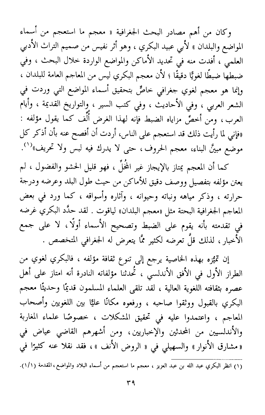 1 انظر البكري عبد الله بن عبد العزيز، معجم ما استعجم من أسماء البلاد والمواضع، المقدمة (1/1) .