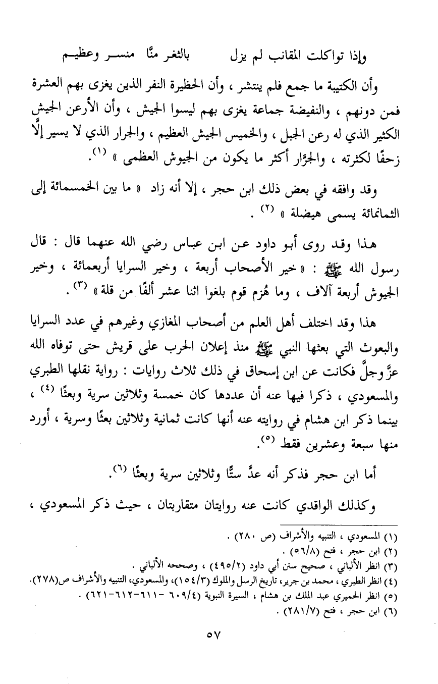أما ابن حجر فذكر أنه عدَّ ستًّا وثلاثين سرية وبعثًا6.