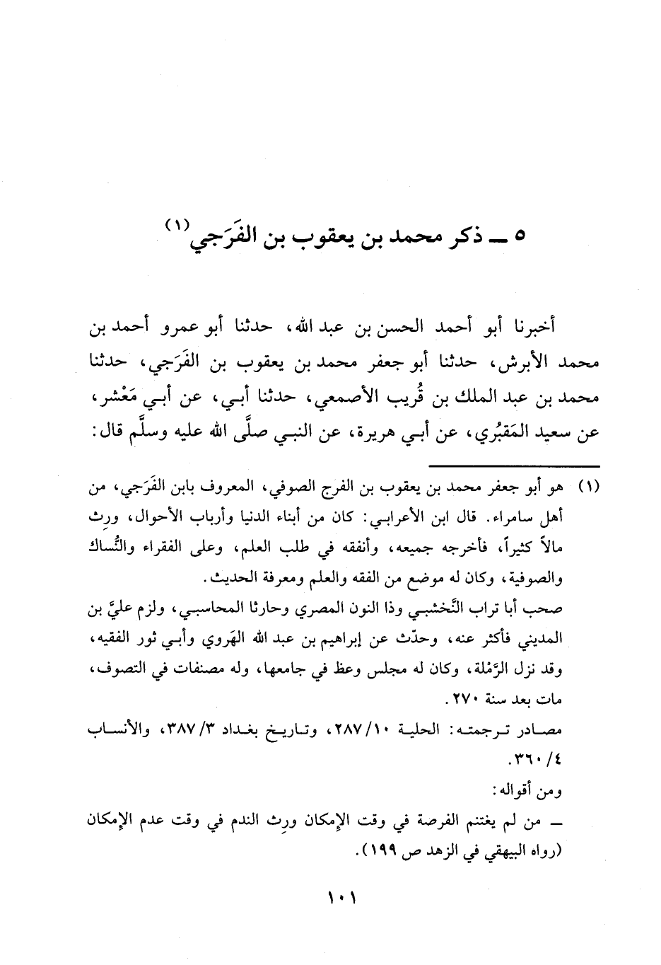 §ذِكْرُ مُحَمَّدِ بْنِ يَعْقُوبَ بْنِ الْفَرَجِيِّ