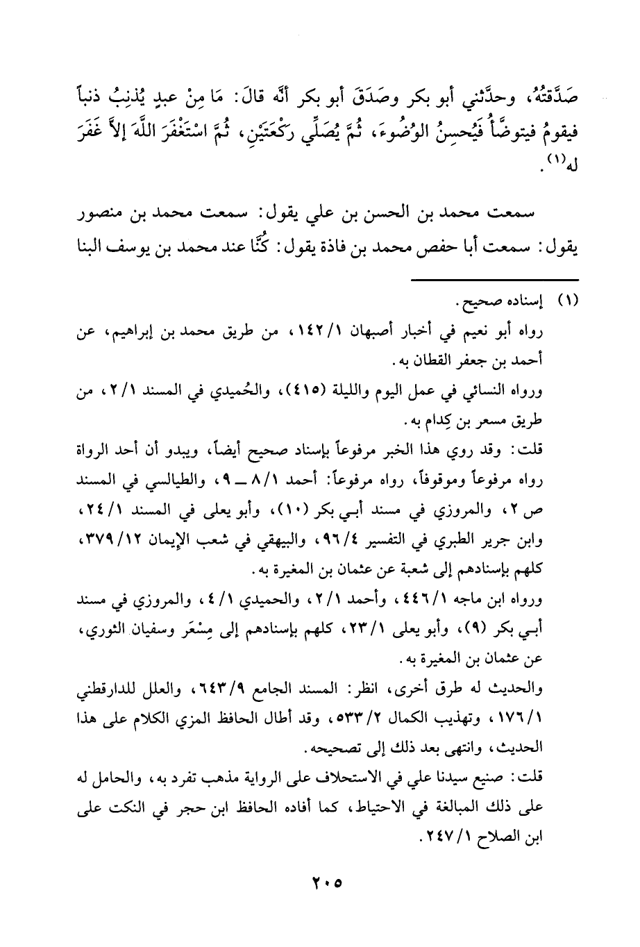 سَمِعْتُ مُحَمَّدَ بْنَ الْحَسَنِ بْنِ عَلِيٍّ، يَقُولُ: سَمِعْتُ مُحَمَّدَ بْنَ مَنْصُورٍ، يَقُولُ: سَمِعْتُ أَبَا حَفْصٍ مُحَمَّدَ بْنَ فَاذَّةَ يَقُولُ: كُنَّا عِنْدَ مُحَمَّدِ بْنِ يُوسُفَ الْبَنَّا -[206]- فَقَالَ: " §إِنْ حَدَثَ بِي حَدَثُ الْمَوْتِ، فَاصْحَبُوا أَبَا جَعْفَرٍ أَحْمَدَ بْنَ جَعْفَرِ بْنِ هَانِي، وَكَانَ فِي جُمْلَةِ أَصْحَابِهِ مَنْ هُوَ أَعْلَمُ مِنْهُ بِعُلُومِ الظَّاهِرِ، فَتَعَجَّبُوا مِنْ مُحَمَّدِ بْنِ يُوسُفَ، فَتَفَرَّسَ مُحَمَّدُ بْنُ يُوسُفَ ذَلِكَ فِينَا، فَصَبَرَ سَاعَةً، ثُمَّ قَالَ: أَيُّ نِعْمَةٍ مِنْ نِعَمِ اللَّهِ عَزَّ وَجَلَّ أَعْظَمُ عِنْدَكُمْ؟ فَتَكَلَّمَ كُلُّ وَاحِدٍ بِمَا عِنْدَهُ، فَالْتَفَتَ إِلَىَّ أَحْمَدُ بْنُ جَعْفَرٍ فَقَالَ لَهُ: مَا تَقُولُ أَنْتَ؟ فَقَالَ: وَأَيُّ نِعْمَةٍ مِنْ نِعَمِهِ صَغِيرَةٌ حَتَّى تَسْأَلَنَا عَنْ أَعْظَمِهَا، فَقَالَ مُحَمَّدُ بْنُ يُوسُفُ: عَلِمْتُمْ أَنَّهُ لَيْسَ فِيكُمْ أَعْلَمُ بِاللَّهِ مِنْهُ "