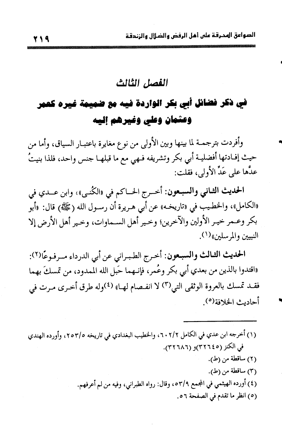 الْفَصْل الثَّالِث فِي ذكر فَضَائِل أبي بكر الْوَارِدَة فِيهِ مَعَ ضميمة غَيره كعمر وَعُثْمَان وَعلي وَغَيرهم إِلَيْهِ