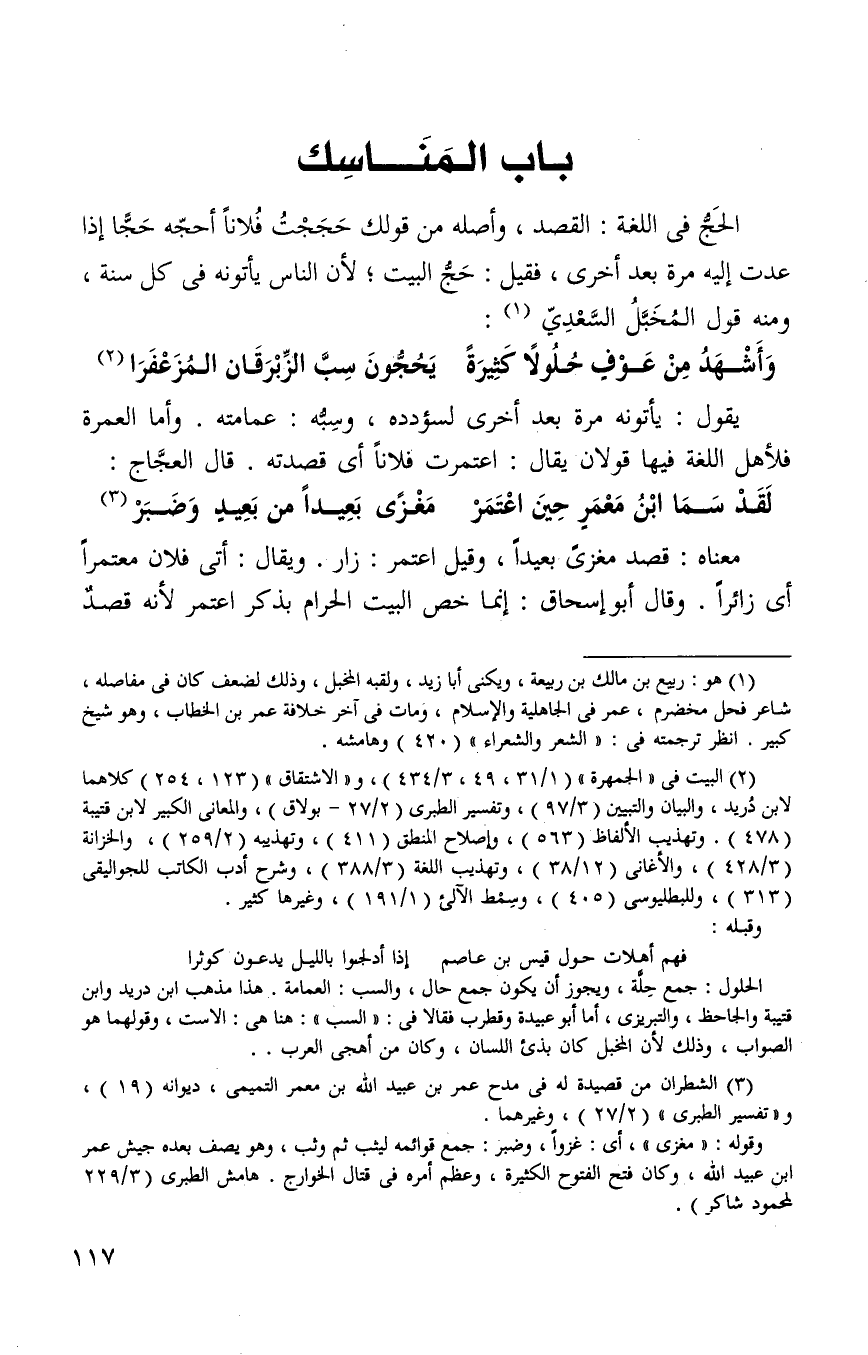 يقول: يأتونه مره بعد أخرى لسؤدده وسبه عمامته يقول وقال ثعلب حججته أي قصدته ومحجه الطريق هي المقصد قال الشيخ وسميت الحجه حجه لانها تحج أي تقصد لان القصد لها واليها وأما العمره فلأهل اللغة فيها قولان يقال اعتمرت فلانا أي قصدته قال العجاج: