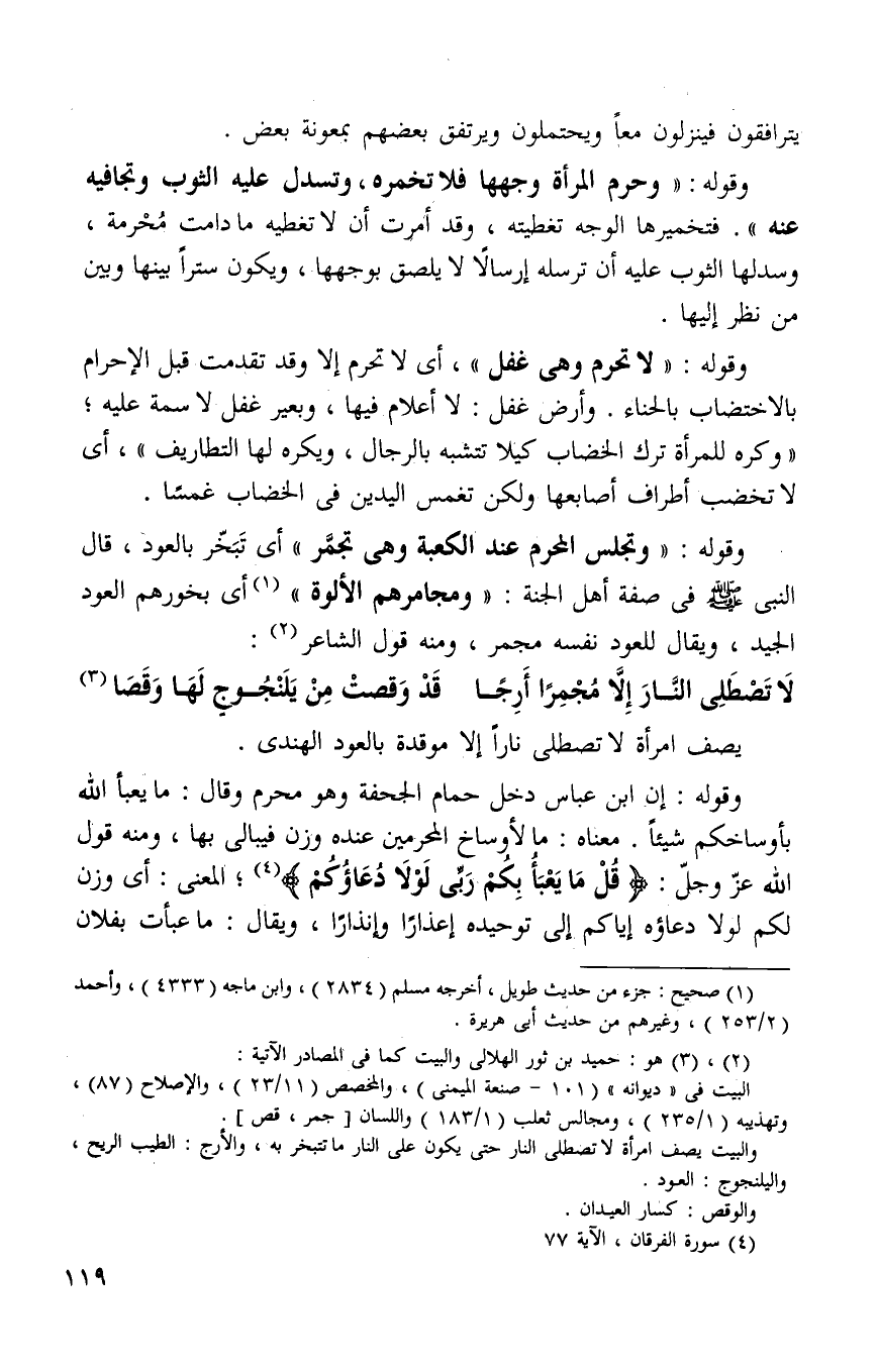 وقوله: أن ابن عباس دخل حمام الجحفه وهو محرم وقال ما يعبأ الله بأوساخكم شيئا معناه ما لأوساخ المحرمين عنده وزن فيبالى بها ومنه قول الله عز وجل: {قُلْ مَا يَعْبَأُ بِكُمْ رَبِّي لَوْلا دُعَاؤُكُمْ} 3 المعنى أي وزن لكم لولا دعاؤه اياكم إلى توحيده اعذارا وانذارا ويقال ما عبأت بفلان