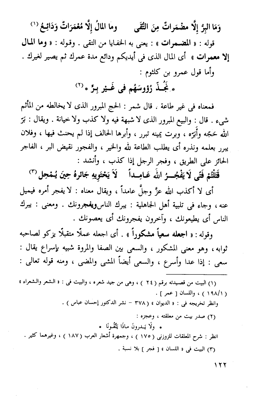 وما البر الا مضمرات من التقى ... وما المال الا معمرات ودائع1