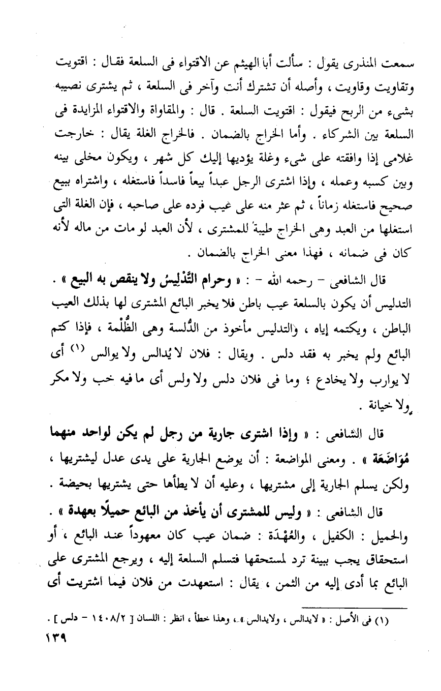 سمعت المنذري يقول سالت ابا الهيثم عن الاقتواء في السلعه فقال يقال اقتويت وتقاويت وقاويت واصله أن تشترك نت وآخر في السلعه ثم تشترى نصيبه بشيء من الربح فتقول اقتويت السلعه قال والمقاواه والاقتواء المزايده في السلعه بين الشركاء وأما الخراج بالضمان فالخراج الغله يقال خارجت غلامى إذا واقفته على شيء وغله يؤديها اليك كل شهر ويكون مخلى بينه وبين كسبه وعمله وإذا اشترى الرجل عبدا بيعا فاسدا فاستغله أو اشتراه ببيع صحيح فاستغله زمانا ثم عثر منه على عيب فرده على صاحبه فان الغله التي استغلها من العبد وهي الخراج طيبة للمشترى لان العبد لو مات مات من ماله لأنه كان في ضمانه فهذا معنى الخراج بالضمان.
