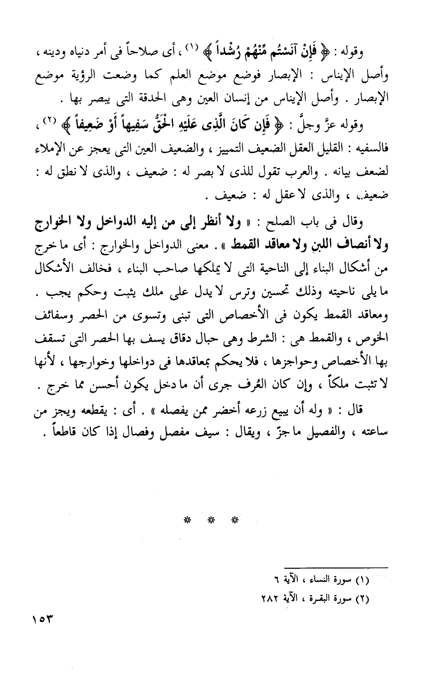 ومعنى الدواخل والخوارج أي ما خرج من اشكال البناء إلى الناحيه التي لا يملكها صاحب البناء مخالف لاشكال ما يلي ناحيته وذلك تحسين وتزيين لا يدل على ملك يثبت وحكم يجب.