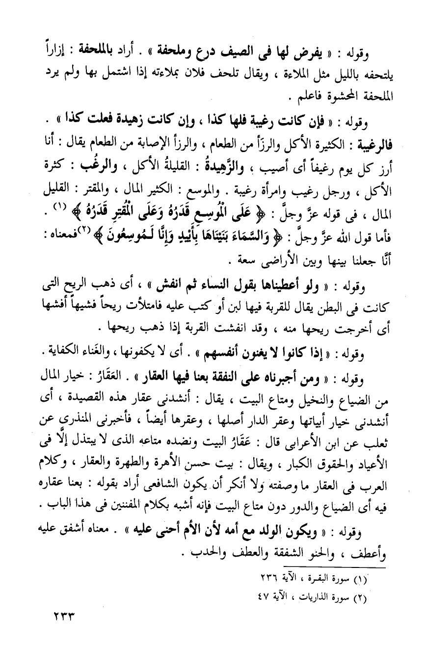 وقوله: "فإن كانت رغيبه فلها كذا وان كانت زهيده فعلت كذا" فالرغيبه الكثيرة الاكل والرزء من الطعام والرزء الاصابه من الطعام يقال انا أرزأ يوم رغيفا أي اصيب والرغب كثرة الاكل ورجل رغيب وامرأة رغيبه الموسع الكثير المال والمقتر القليل المال في قوله عز وجل: {عَلَى الْمُوسِعِ قَدَرُهُ وَعَلَى الْمُقْتِرِ قَدَرُهُ} 1 وأما قوله جل ذكره: {وَالسَّمَاءَ بَنَيْنَاهَا بِأَيْدٍ وَإِنَّا لَمُوسِعُونَ} 2 فمعناه انا جعلنا بينها وبين الأراضي سعة.