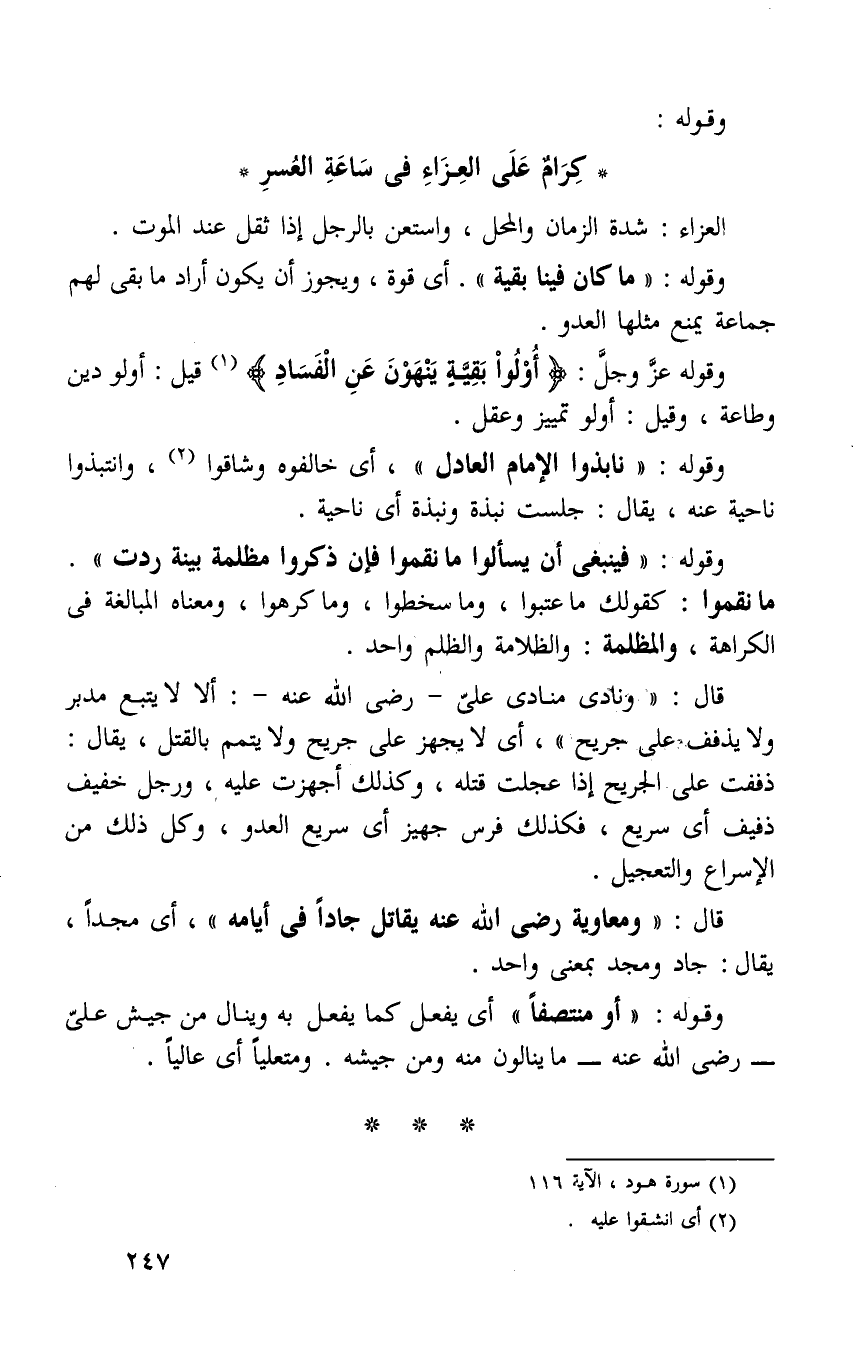 وقوله عز وجل: {أُولُو بَقِيَّةٍ يَنْهَوْنَ عَنِ الْفَسَادِ} 1 قيل أولو دين وطاعه وقيل أولو تمييز وعقل.
