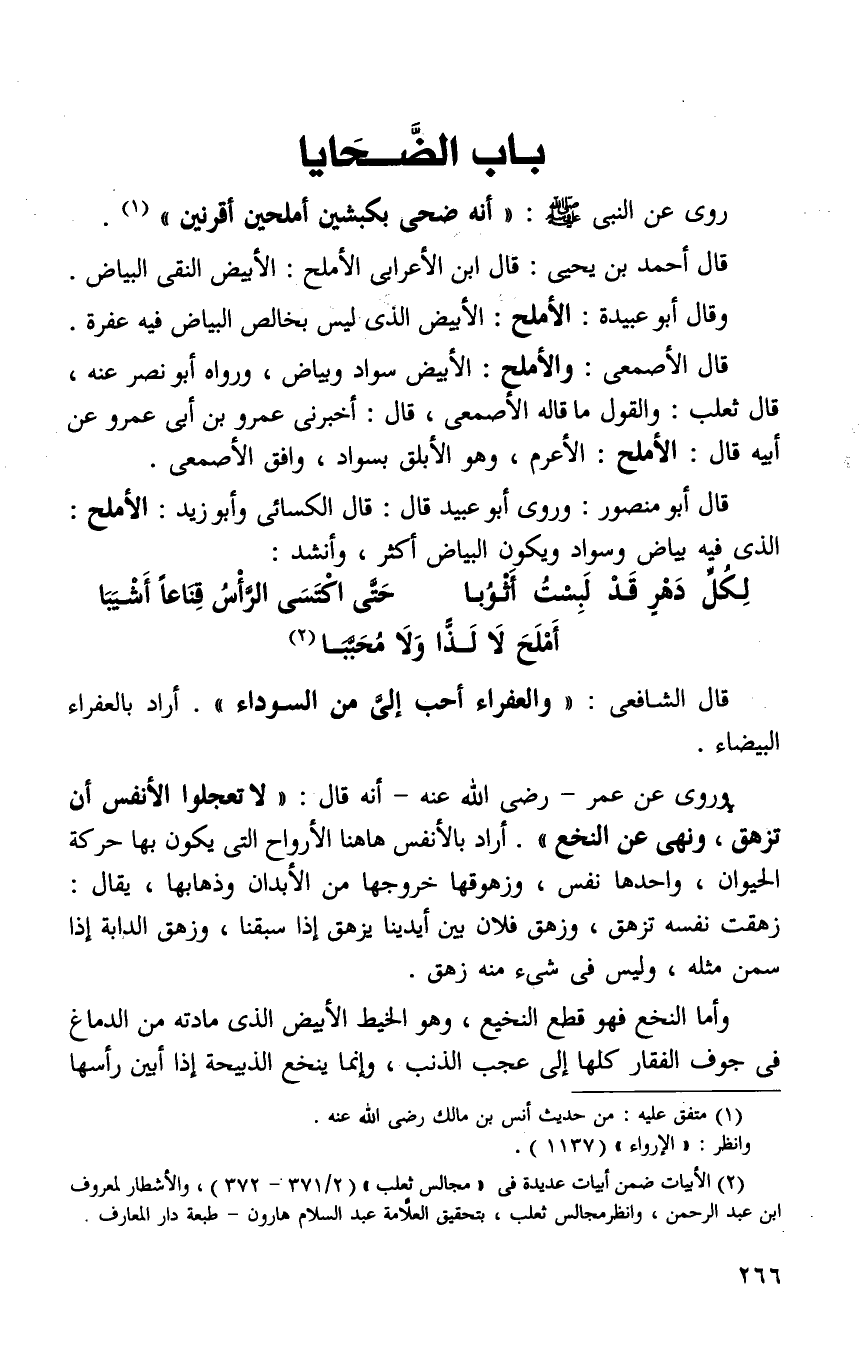 روى عن النبي صلى الله عليه وسلم: "انه ضحى بكبشين املحين واقرنين" 1.