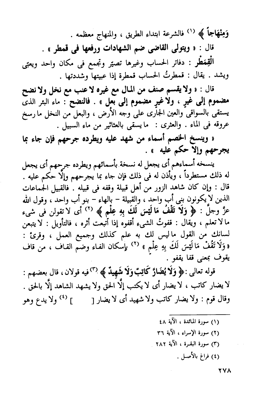 وقوله تعالى: {ولا يضار كاتب ولا شهيد} 3 فيه قولان قال بعضهم لا يضار كاتب أي لا يضار أي لا يكتب الا بالحق ولا يشهد الشاهد الا بالحق. وقال قوم: لا يضار كاتب ولا شهيد الا يضار 4ولا يدعي وهو