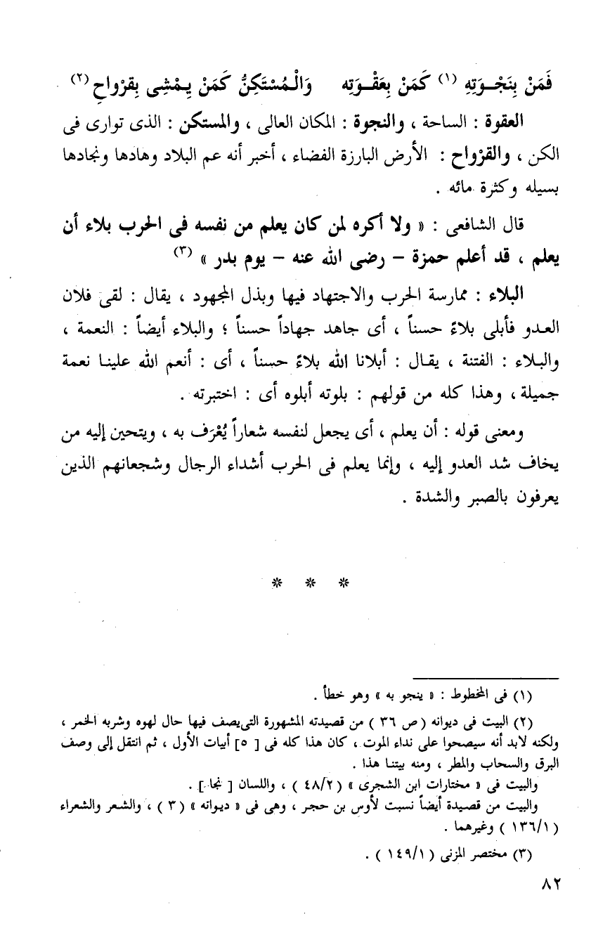 فمن بنجوته1 كمن يعقوته ... والمستكن كمن يمشى بقرواح2