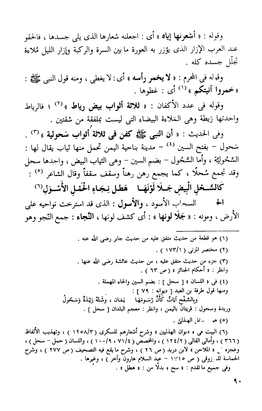 وفي الحديث: "ان النبي صلى الله عليه وسلم كفن في ثلاثة أثواب سحوليه" 3.
