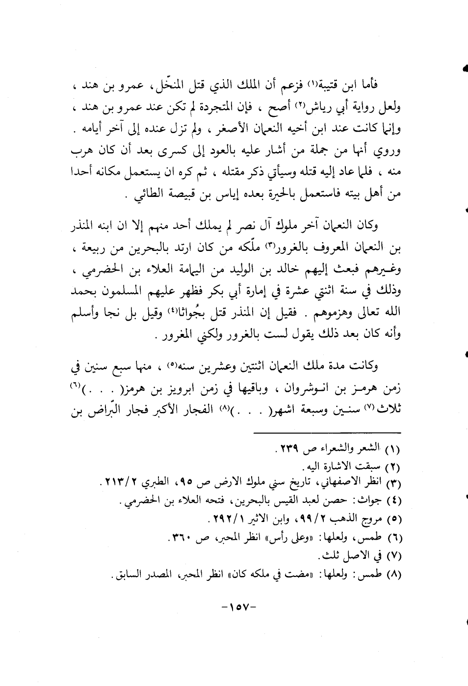 وكانت مدة ملك النعمان أثنتين وعشرين سنة، منها سبع سنين في زمن هرمز بن أنوشروان، وباقيها في زمن أبرويز بن هرمز " 000 " ثلاث سنين وسبعة أشهر " 000 " الفجار الأكبر فجار البراض بن