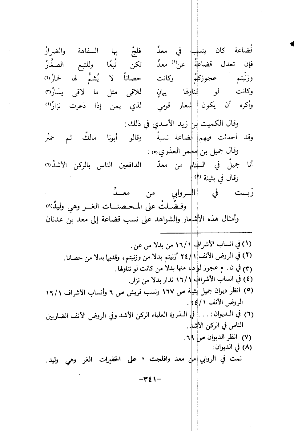 وأمثال هذه الاشعار والشواهد على نسب قضاعة الى معد بن عدنان