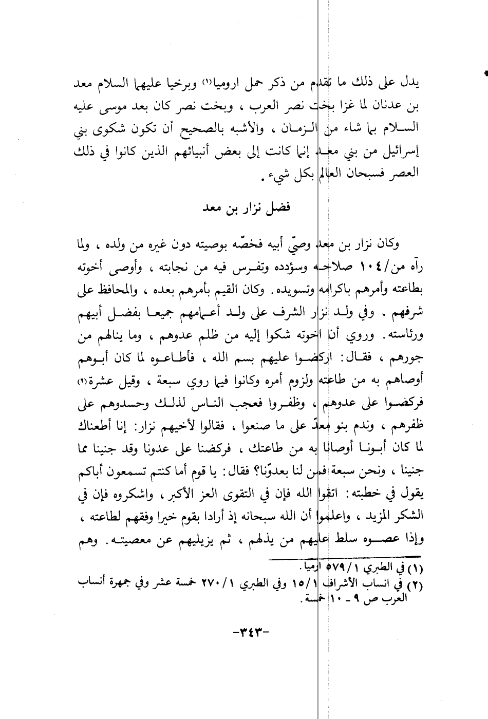 يدل على ذلك ما تقدم من ذكر حمل أروميا وبرخيا عليهما السلام معد بن عدنان لما غزا بخت نصر العرب، وبخت نصر كان بعد موسى عليه السلام بما شاء من الزمان، والاشبه بالصحيح إن تكون شكوى بني إسرائيل من بني معد الى بعض أنبيائهم الذين كانوا في ذلك العصر فسبحان العالم بكل شيء.