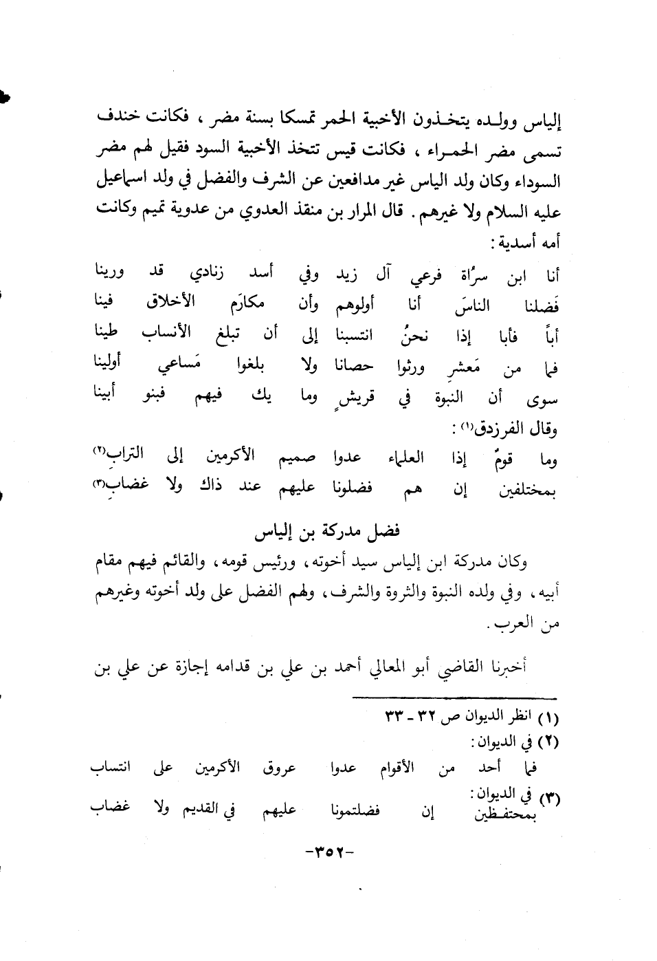 وكان مدركة أبن الياس سيد أخوته ورئيس قومه والقائم فيهم مقام أبيه وفي ولده والثروة والشرف ولهم الفضل على ولد أخوته وغيرهم من العرب.