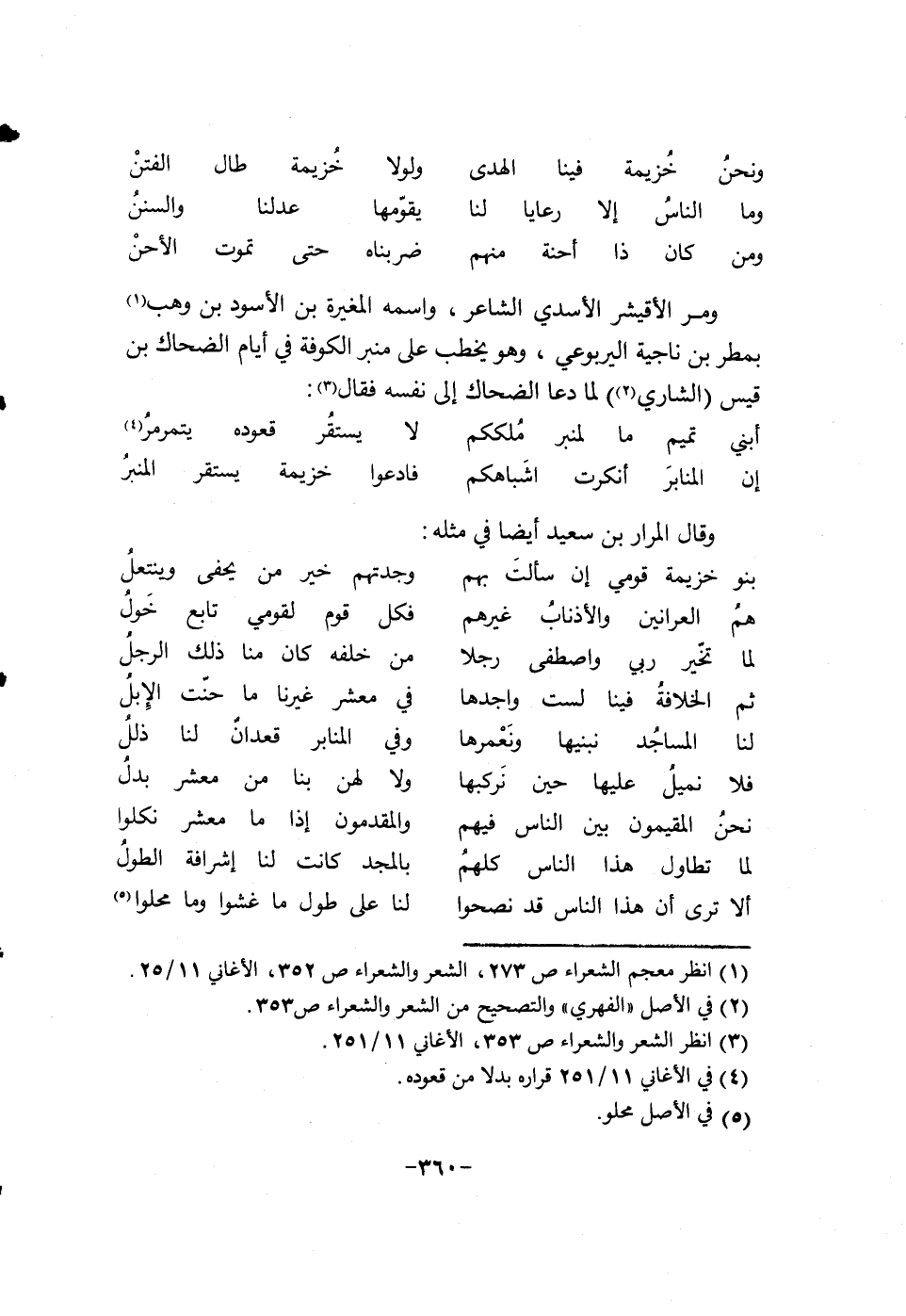 ومن الاقيشر الاسدي الشاعر، وأسمه المغيرة بن الاسود بن وهب بمطر بن ناجية اليربوعي، وهو يخاطب على منبر الكوفة في أيام الضحاك بن قيس الشاري لما دعا الضحاك الى نفسة فقال: