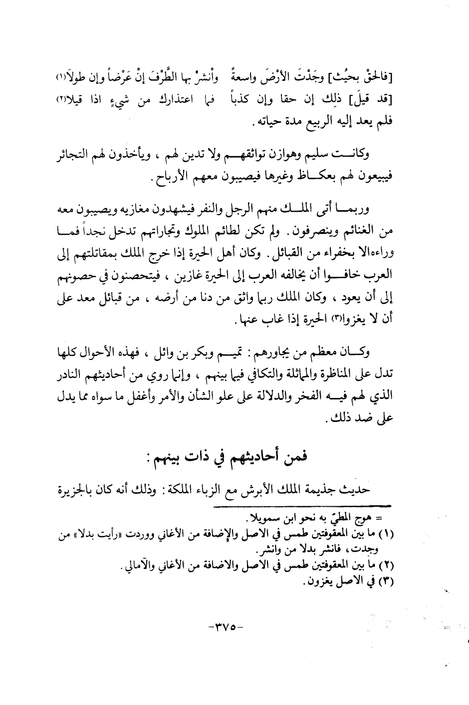 وكان معظم من يجاورهم تميم وبكر بن وائل فهذه الاحوال كلها تدل على المناظرة والمماثلة والتكافي فيما بينهم وإنما روي من أحاديثهم النادر الذي لهم فيه الفخر والدلالة على علو الشأن والامر وأغفل ما سواه مما يدل على ضد ذلك.