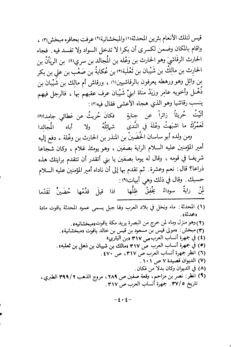 قيس لتلك الإنعام المحدثة والمبخشانية عرفت بحافره مبخش وأقام بالمكان وضمن لكسرى إن بكرا لا تدخل السواد ولا تفسد فيه. فجاء الحارث الرقاشي وهو الحارث بن وعله بن المجالد بن سري بن الريان بن الحارث بن مالك بن شيبان بن ثعلبة بن عكابة بن صعب بن علي بن بكر بن وائل وهو ورهطه يعرفون بالرقاسين ورقاس أم مالك بن شيبان بن ذهل وأخويه عامر وزيد مناة أبني شيبان عرف عقبهم بها فالرجل فيهم ينسب رقاشيا وهو الذي هجاه الأعشى فقال فيه: