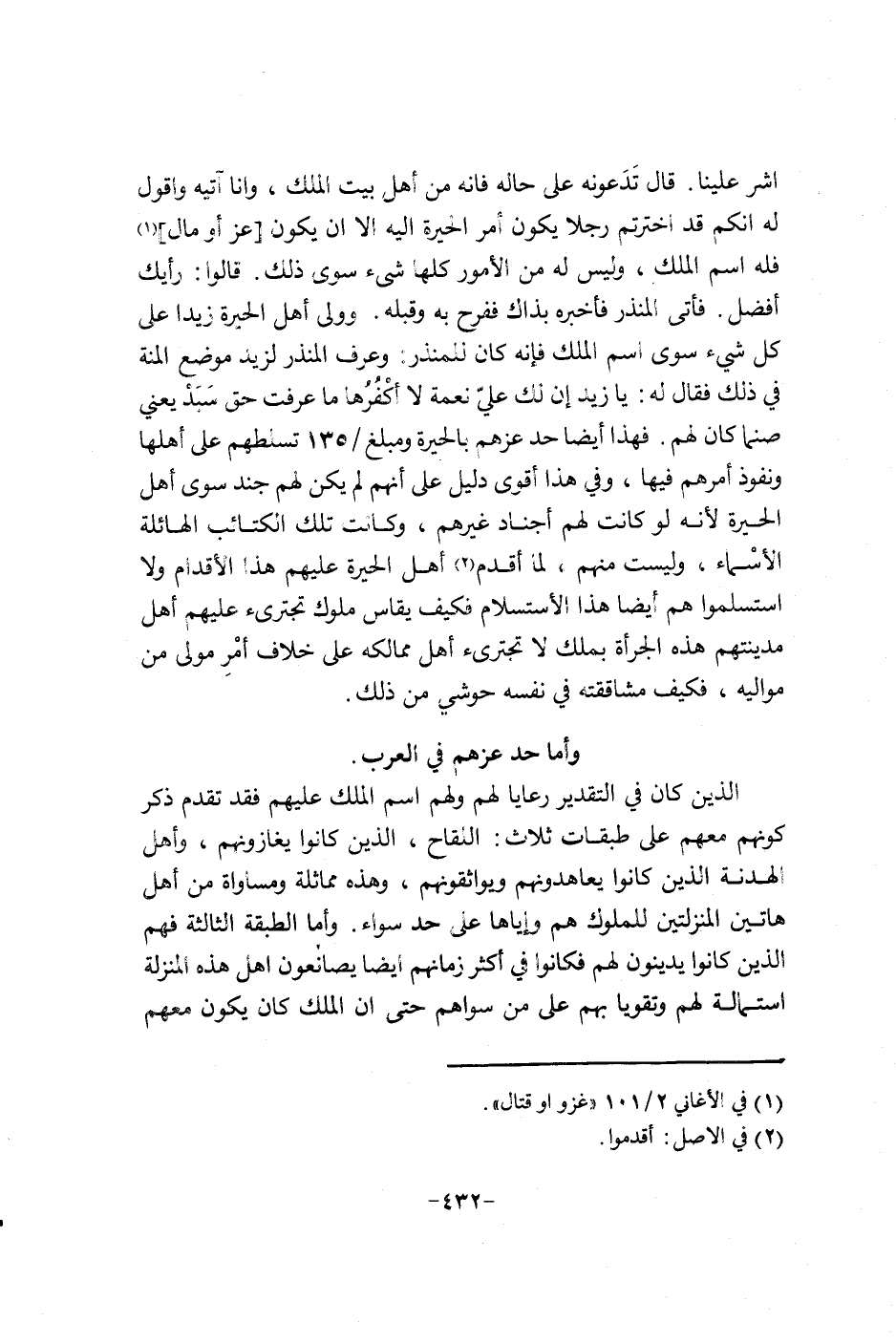 أشر علينا. قال تدعونه على حاله فانه من أهل بيت الملك، وأنا آتيه وأقول له أنكم قد اخترتم رجلا يكون أمر الحيرة الامتناع أبوكم إن يكون عز أو مال فيه أسم الملك، وليس له من الأمصار كلها شيء سوى ذلك. قالوا: رأيك أفضل. فأتى المنذر فأخبره بذاك ففرح به وقبله. وولى أهل الحيرة زيدا على كل شيء سوى أسم الملك فانه كان للمنذر: وعرف المنذر لزيد موضع المنة في ذلك فقال له: يا زيد إن لك علي نعمة لا أكفرها ما عرفت حق سبد يعني صنما كان لهم. فهذا أيضاً حد عزهم بالحيرة ومبلغ135 تسلطهم على أهلها ونفوذ أمرهم فيها، وفي هذا أقوى دليل على إنهم لم يكن لهم جند سوى أهل ال؟؟؟؟؟؟؟؟؟؟؟؟؟؟؟؟؟؟؟؟؟؟؟؟؟؟؟؟؟؟؟؟؟؟؟؟؟؟؟؟؟؟؟؟؟؟؟؟؟؟؟؟؟؟؟؟؟؟؟؟؟؟؟؟؟؟؟؟؟؟؟؟؟؟؟؟؟؟؟؟؟؟؟؟؟؟؟؟؟؟؟؟؟؟؟؟؟؟؟؟؟؟؟؟؟؟؟؟؟؟؟؟؟؟؟؟؟؟؟؟؟؟؟؟؟؟؟؟؟؟؟؟؟؟؟؟؟؟؟؟؟؟؟؟؟؟؟؟؟؟؟؟؟؟؟؟؟؟؟؟؟؟؟؟؟؟؟؟؟؟؟؟؟؟؟؟؟؟؟؟؟؟؟؟؟؟؟؟؟؟؟؟؟؟؟؟؟؟؟؟؟؟؟؟؟؟؟؟؟؟؟؟؟؟؟؟؟؟؟؟؟؟؟؟؟؟؟؟؟؟؟؟؟؟؟؟؟؟؟؟؟؟؟؟؟؟؟؟؟؟؟؟؟؟؟؟ وليه، فكيف مشاققته في نفسي حوشي من ذلك.