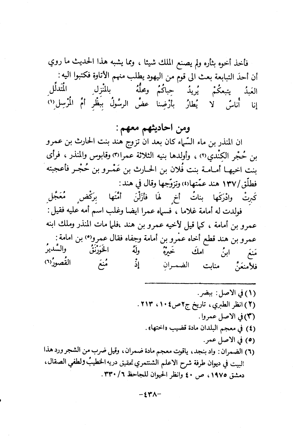 فاخذ أخوه بثأره ولم يصنع الملك شيئاً، ومما يشبه هذا الحديث ما روي إن أحد التبابعة بعث ألف قوم من اليهود يطاب منهم الإتاوة فكتبوا الامتناع: