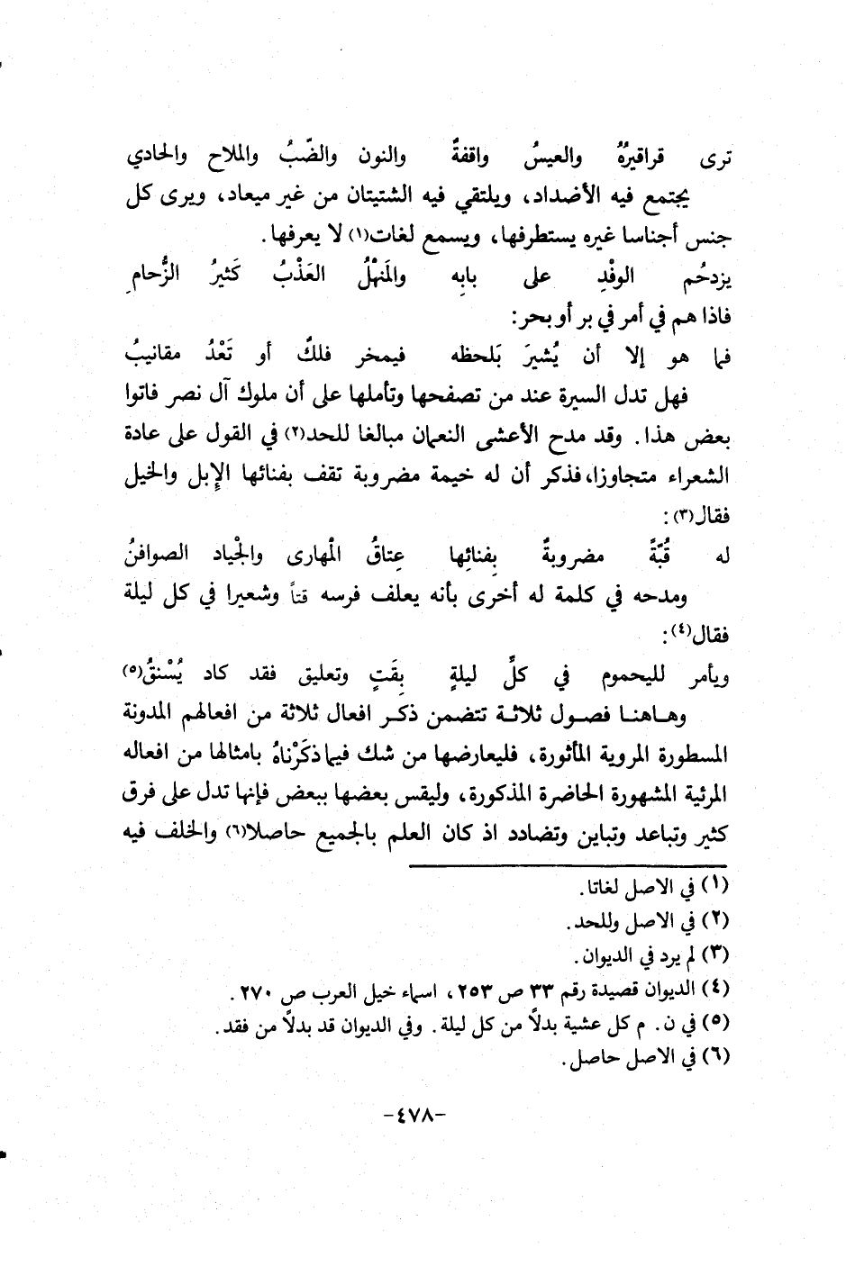 فهل تدل السيرة عند من تصفحها وتأملها على إن ملوك آل نصر جاءوني بعض هذا. وقد مدح الأعشى النعمان مبالغاً للحد في القول على عادة الشعراء متجاوزا، فذكر إن له خيمة مضروبةً تقف بقنائها الأبرص والخيل فقال: