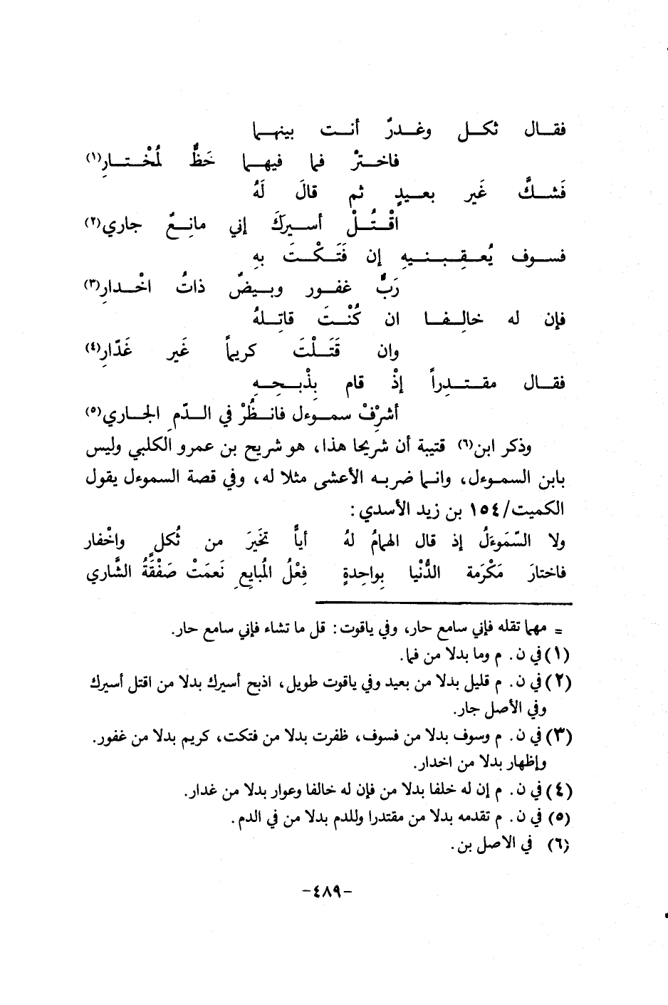فقال مقتدراً إذ قام بذبحه ... أشرف سمؤل فأنظر في الدم الجاري