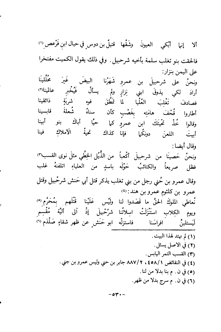 وقال عمرو بن حني رجل من بني تغلب يذكر قتل أبي حنش شرحبيل وقتل عمرو بن كلثوم عمرو بن هند:
