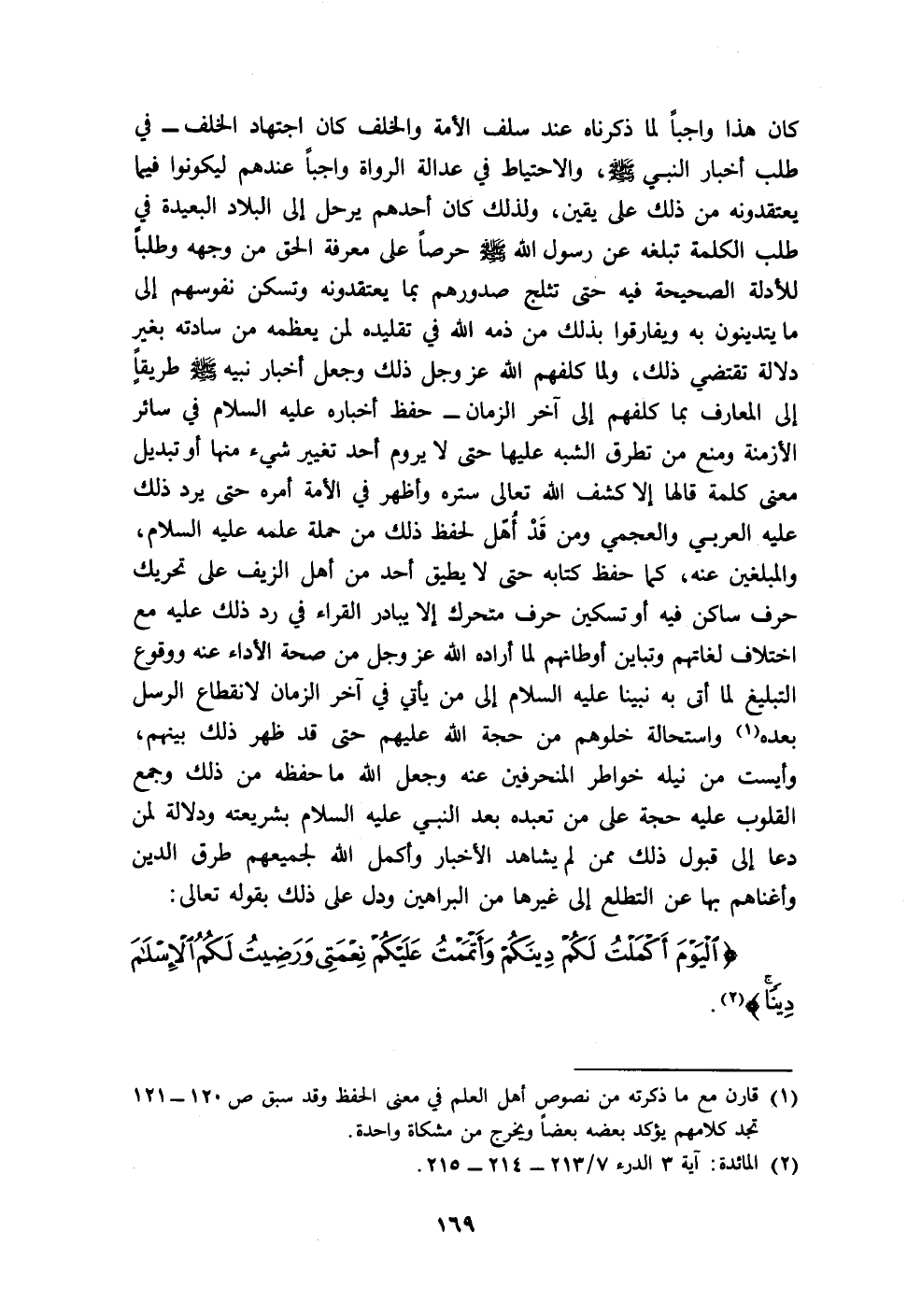 (٢) المائدة: آية ٣ الدرء ٧/ ٢١٣ - ٢١٤ - ٢١٥.