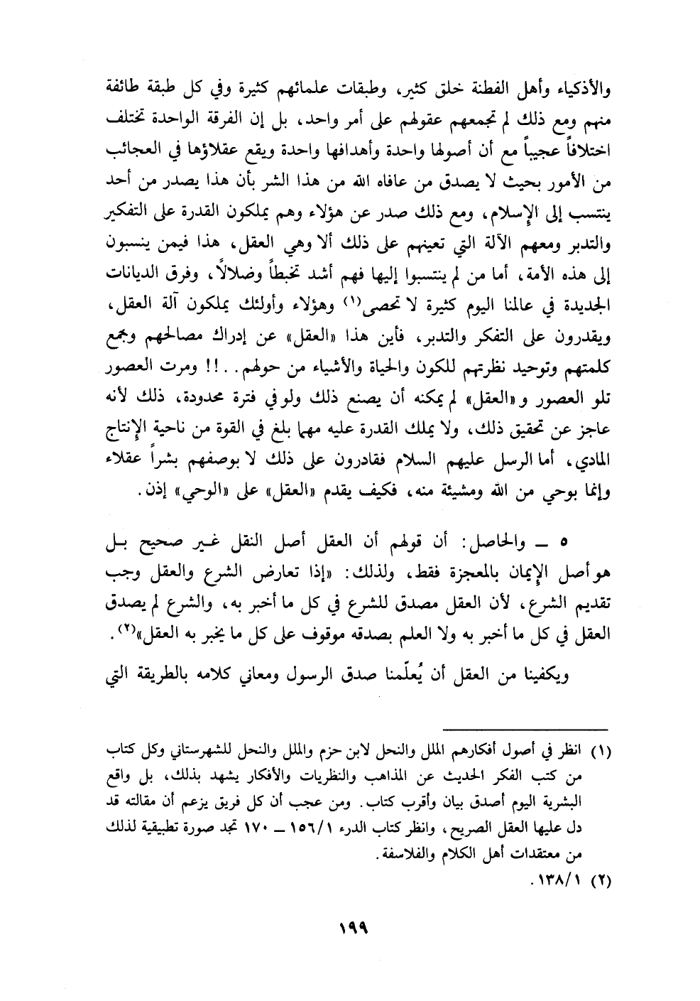 (١) انظر في أصول أفكارهم الملل والنحل لإبن حزم والملل والنحل للشهرستاني وكل كتاب من كتب الفكر الحديث عن المذاهب والنظريات والأفكار يشهد بذلك، بل واقع البشرية اليوم أصدق بيان وأقرب كتاب. ومن عجب أن كل فريق يزعم أن مقالته قد دل عليها العقل الصريح، وانظر كتاب الدرء ١/ ١٥٦ - ١٧٠ تجد صورة تطبيقية لذلك من معتقدات أهل الكلام والفلاسفة.