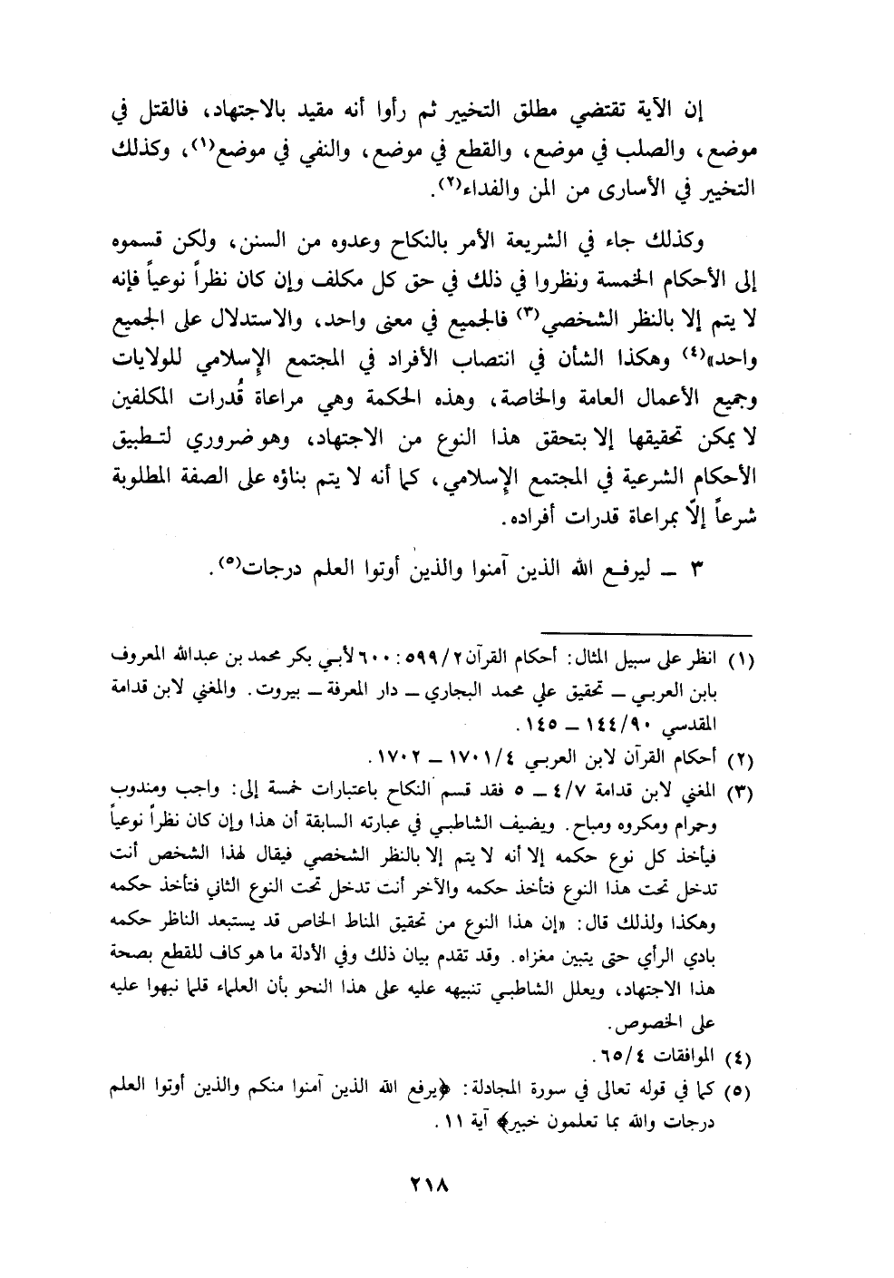 (٥) كما في قوله تعالى في سورة المجادلة: {يَرْفَعِ اللَّهُ الَّذِينَ آمَنُوا مِنْكُمْ وَالَّذِينَ أُوتُوا الْعِلْمَ دَرَجَاتٍ وَاللَّهُ بِمَا تَعْمَلُونَ خَبِيرٌ} آية ١١.