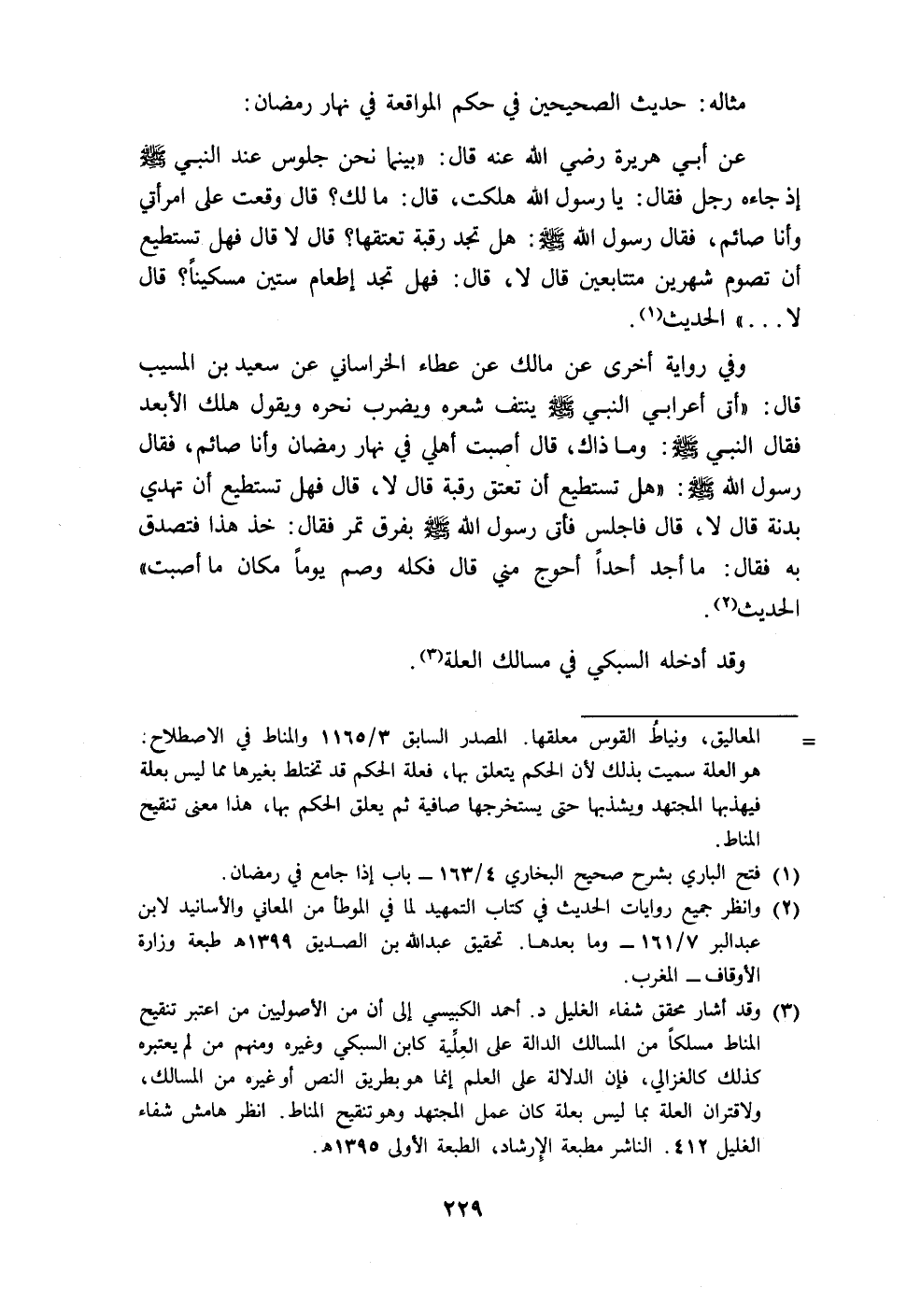(٣) وقد أشار محقق شفاء الغليل د. أحمد الكبيسي إلى أن من الأصوليين من اعتبر تنقيح المناط مسلكًا من المسالك الدالة على العِلِّية كابن السبكي وغيره ومنهم من لم يعتبره كذلك كالغزالي، فإن الدلالة على العلم إنما هو بطريق النص أو غيره من المسالك، ولاقتران العلة بما ليس بعلة كان عمل المجتهد وهو تنقيح المناط. انظر هامش شفاء الغليل ٤١٢. الناشر مطبعة الإِرشاد، الطبعة الأولى ١٣٩٥ هـ.
