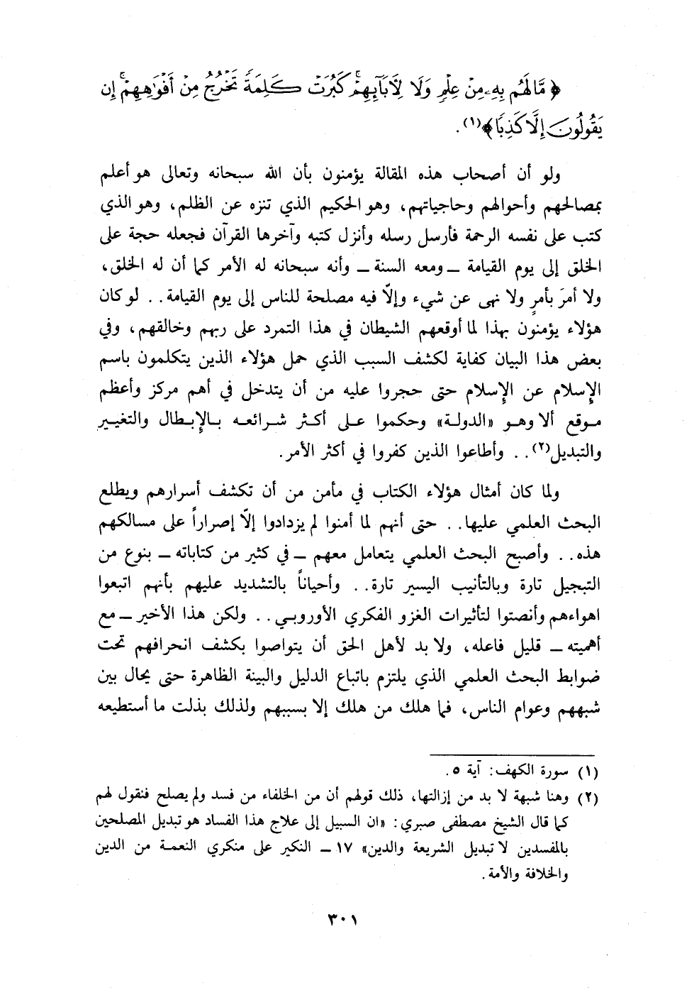 (١) سورة الكهف: آية ٥.