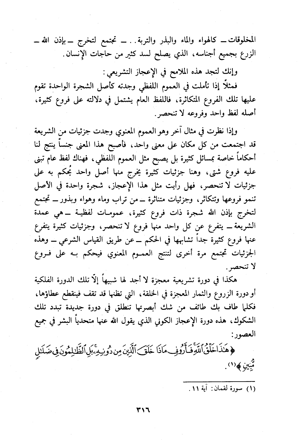هكذا في دورة تشريعية معجزة لا أجد لها شبيهًا إلا تلك الدورة الفلكية أو دورة الزروع والثمار المعجزة في الخلقة، التي تظنها قد تقف فينقطع عطاؤها، فكلما طاف بك طائف من شك أبصرتها تنطلق في دورة جديدة تبدد تلك الشكوك، هذه دورة الإِعجاز الكوني الذي يقول الله عنها متحديًا البشر في جميع العصور:
